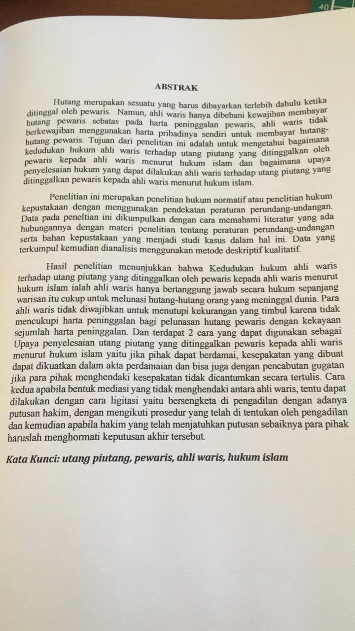 UPAYA PENYELESAIAN UTANG PIUTANG YANG DITINGGALKAN PEWARIS KEPADA AHLI WARIS MENURUT HUKUM ISLAM