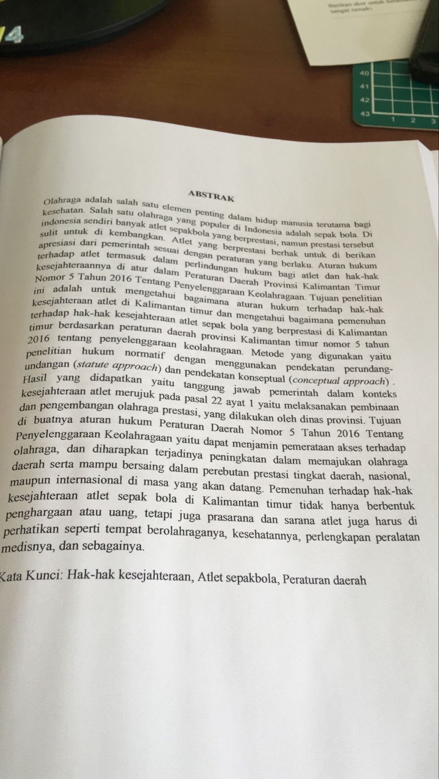 TINJAUAN YURIDIS TERHADAP HAK-HAK KESEJAHTERAAN ATLET SEPAK BOLA DI KALIMANTAN TIMUR BERDASARKAN PERATURAN DAERAH PROVINSI KALIMANTAN TIMUR NOMOR 5 TAHUN 2016 TENTANG PENYELENGGARAAN KEOLAHRAGAAN