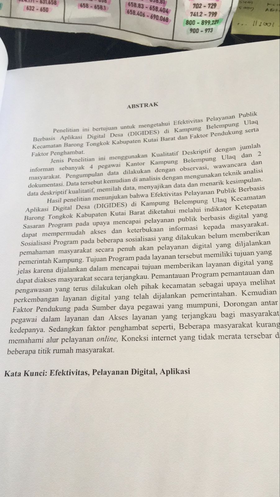 EFEKTIVITAS PELAYANAN PUBLIK BERBASIS APLIKASI DIGITAL DESA (DIGIDES) DI KAMPUNG BELEMPUNG ULAQ KECAMATAN BARONG TONGKOK KABUPATEN KUTAI BARAT