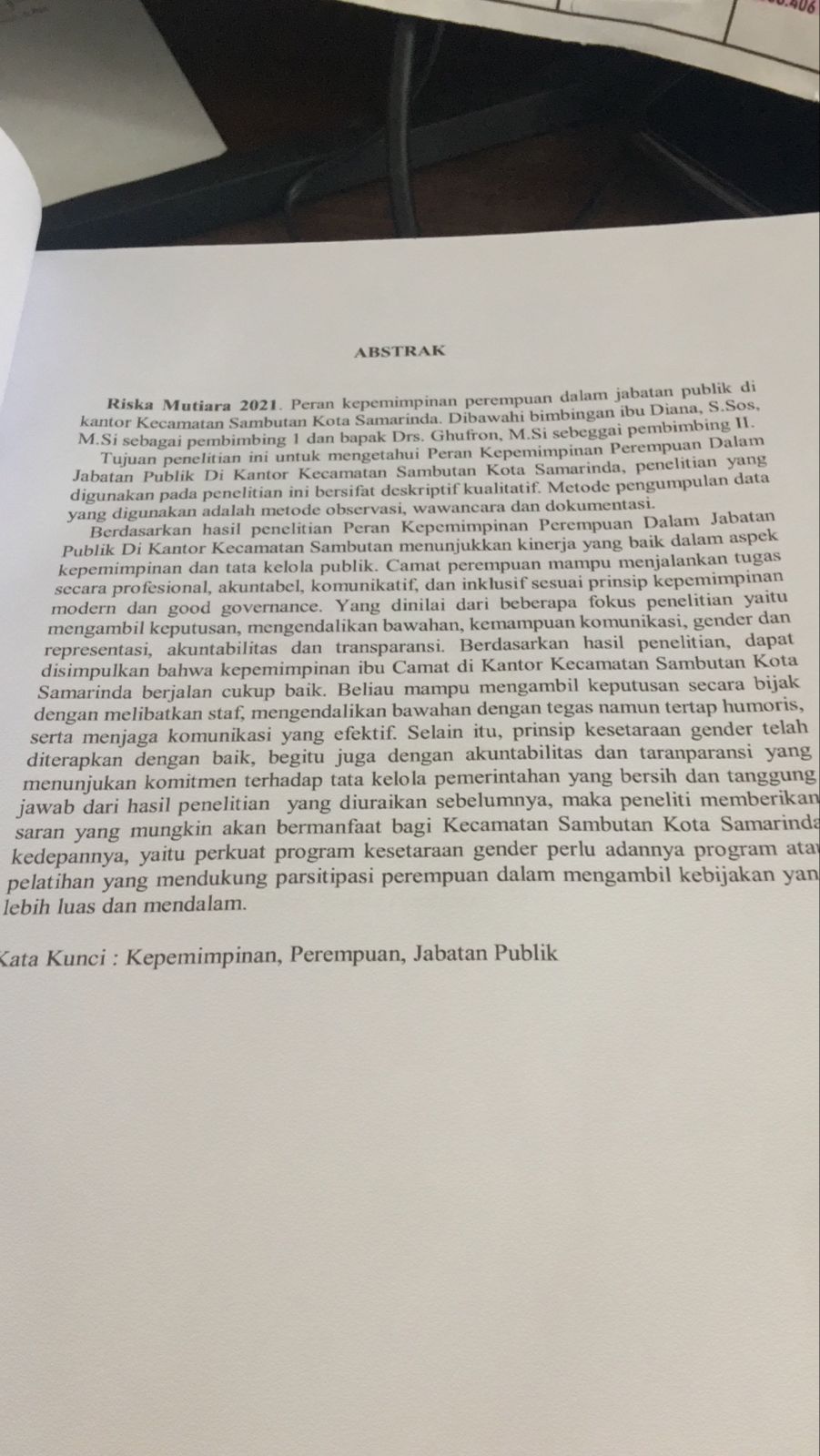 PERAN KEPEMIMPINAN PEREMPUAN DALAM JABATAN PUBLIK DI KANTOR KECAMATAN SAMBUTAN KOTA SAMARINDA