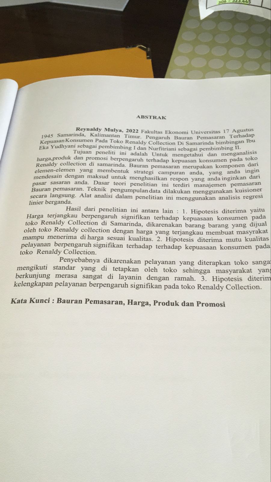 PENGARUH BAURAN PEMASARAN TERHADAP KEPUASAN KONSUMEN PADA TOKO RENALDY COLLECTION DI SAMARINDA