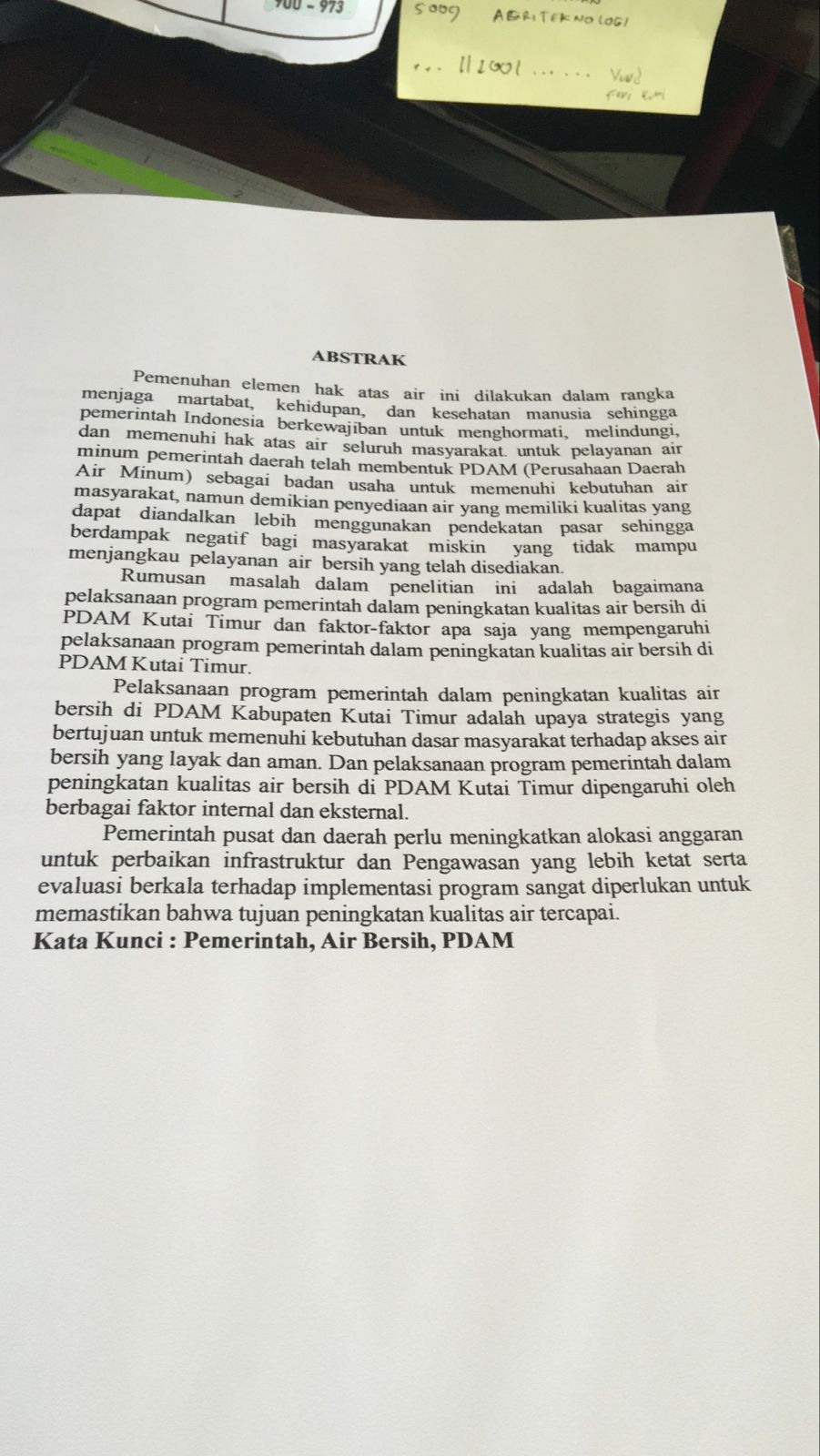 PELAKSANAAN PROGRAM PEMERINTAH DALAM PENINGKATAN KUALITAS AIR BERSIH DI PDAM KUTAI TIMUR