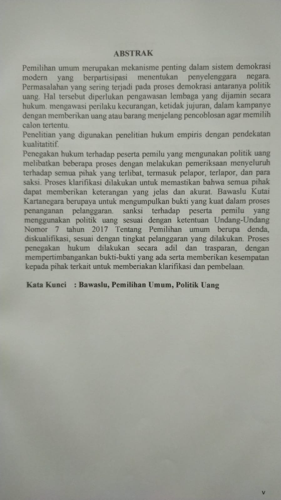 PENEGAKAN HUKUM TERHADAP PESERTA PEMILU MEMPERGUNAKAN CARA POLITIK UANG DI KECAMATAN TENGGARONG SEBERANG