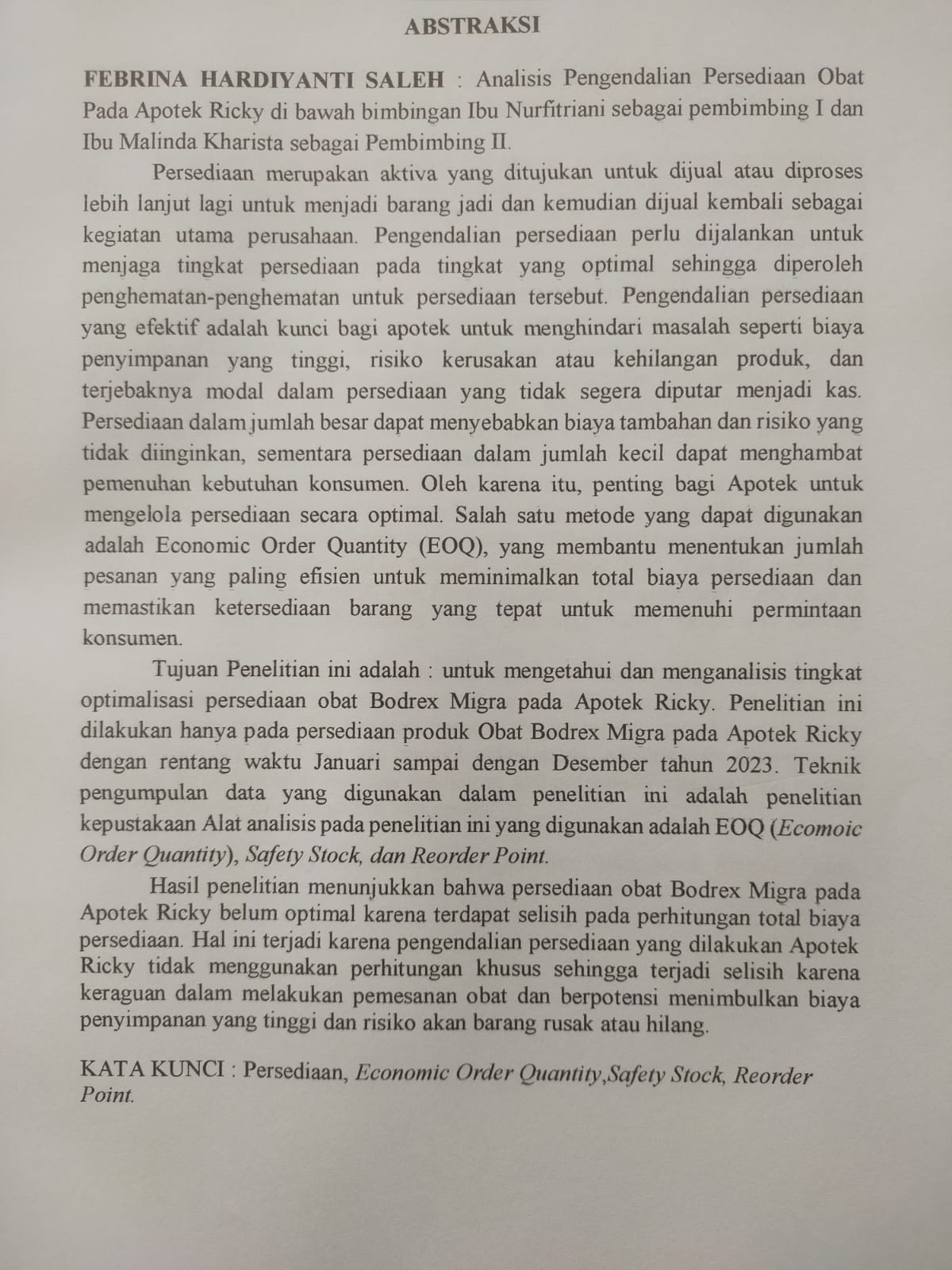 ANALISIS PENGENDALIAN PERSEDIAAN OBAT PADA APOTEK RICKY