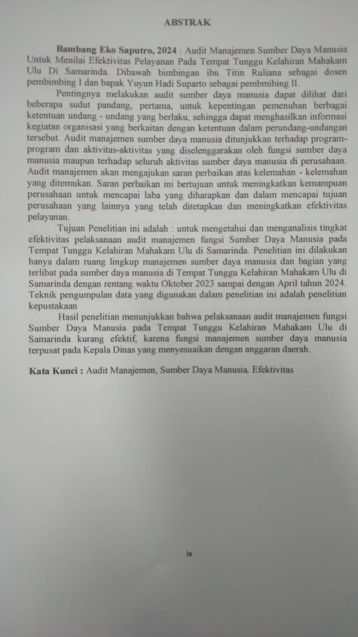 AUDIT MANAJEMEN SUMBER DAYA MANUSIA UNTUK MENILAI EFEKTIFITAS PELAYANAN PADA TEMPAT TUNGGU KELAHIRAN MAHAKAM ULU DI SAMARINDA