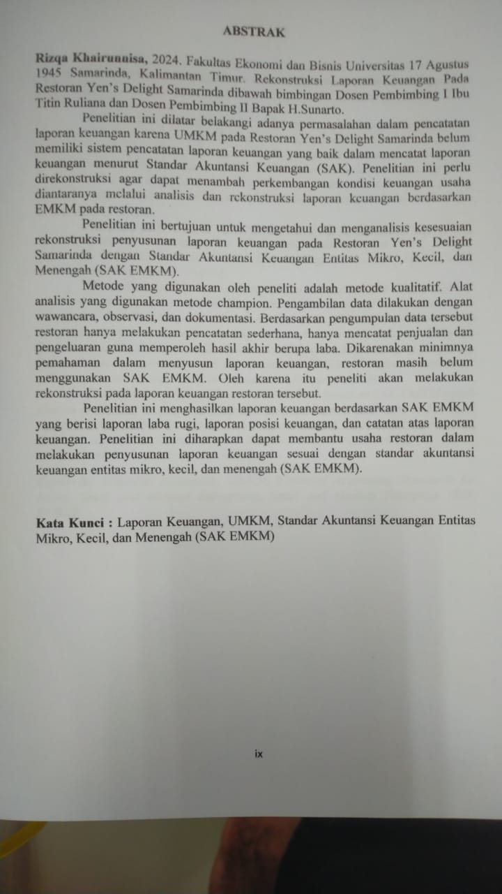 REKONSTRUKSI LAPORAN KEUANGAN PADA RESTORAN YEN'S DELIGHT SAMARINDA