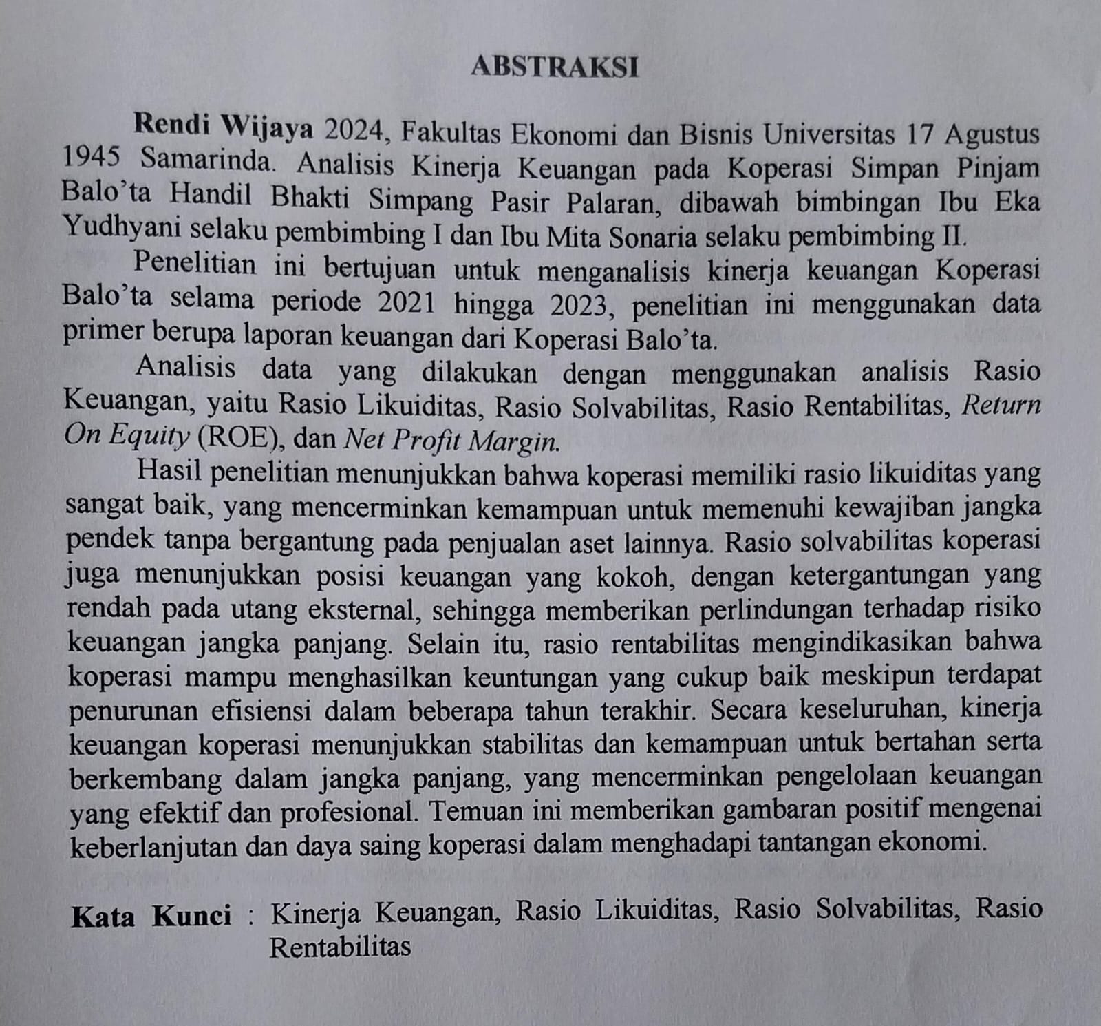 ANALISIS KINERJA KEUANGAN PADA KOPERASI SIMPAN PINJAM BALO'TA HANDIL BHAKTI SIMPANG PASIR PALARAN