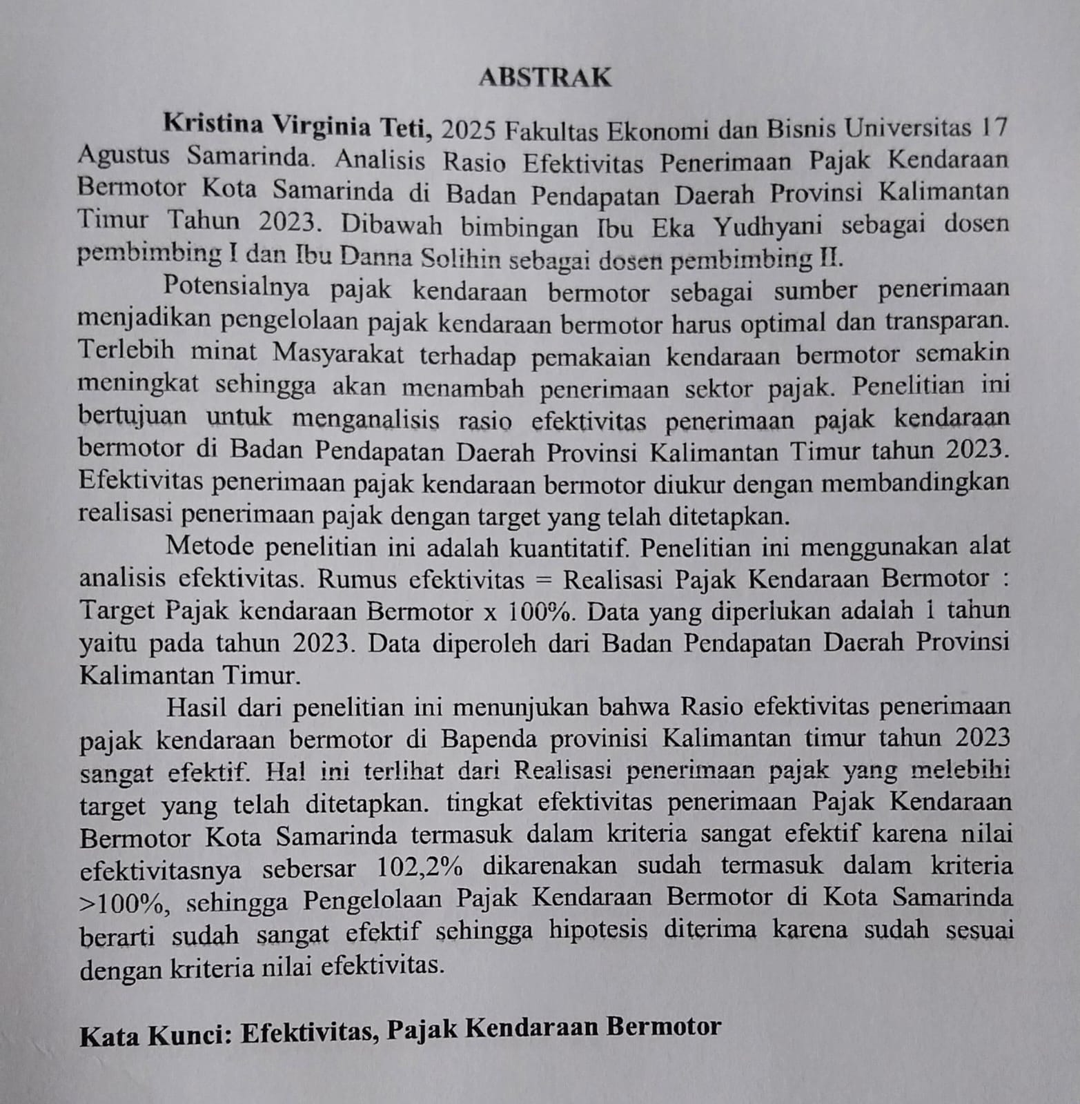 ANALISIS RASIO EFEKTIVITAS PENERIMAAN PAJAK KENDARAAN BERMOTOR KOTA SAMARINDA DI BADAN PENDAPATAN DAERAH PROVINSI KALIMANTAN TIMUR TAHUN 2023