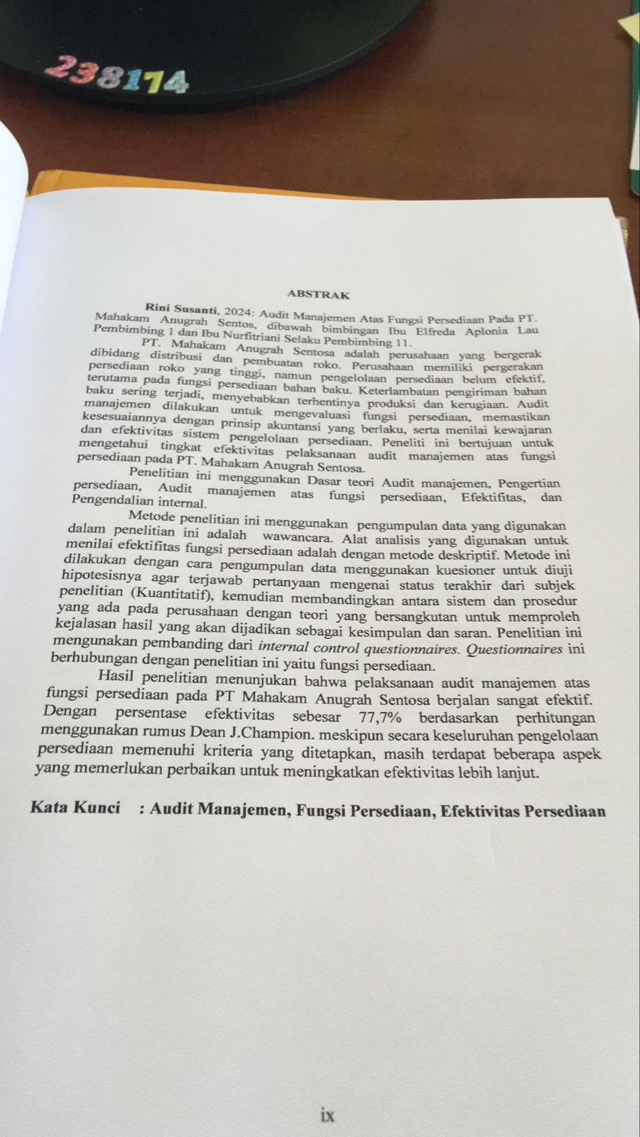 AUDIT MANAJEMEN ATAS FUNGSI PERSEDIAAN PADA PT.MAHAKAM ANUGRAH SENTOSA