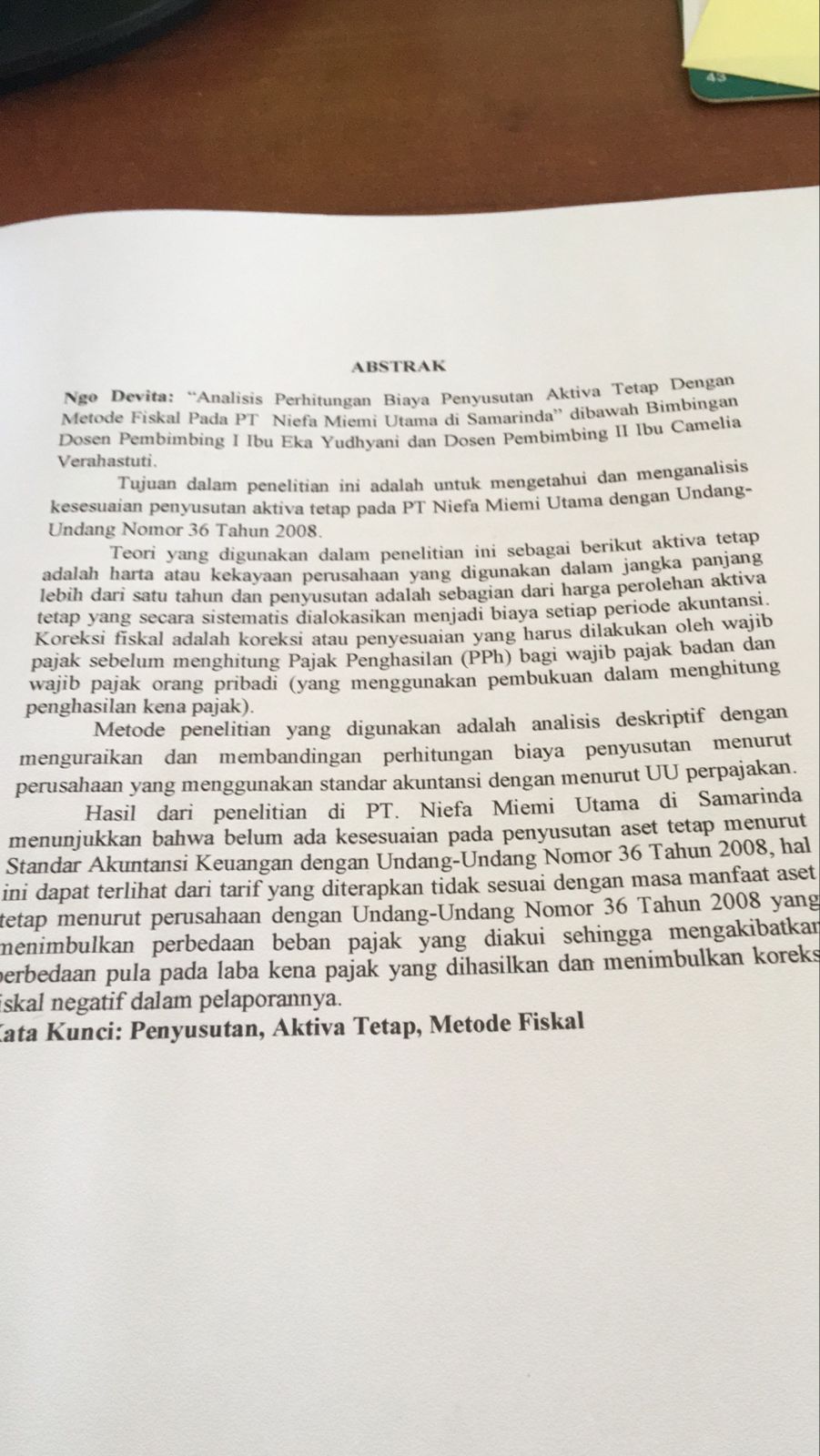 ANALISIS PERHITUNGAN BIAYA PENYUSUTAN AKTIVA TETAP DENGAN METODE FISKAL PADA PT NIEFA MIEMI UTAMA DI SAMARINDA