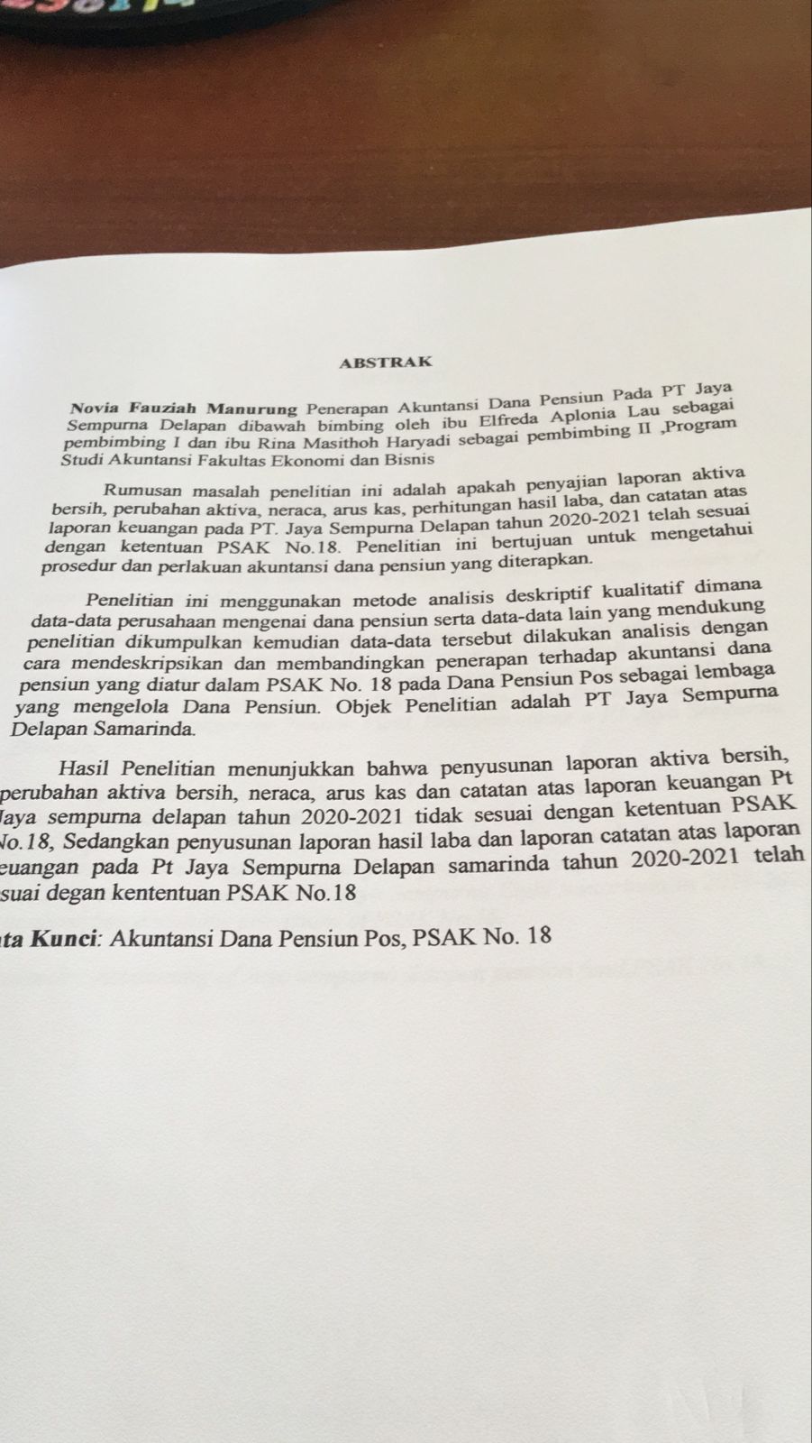 ANALISIS AKUNTANSI DANA PENSIUN PADA PT. JAYA SEMPURNA DELAPAN