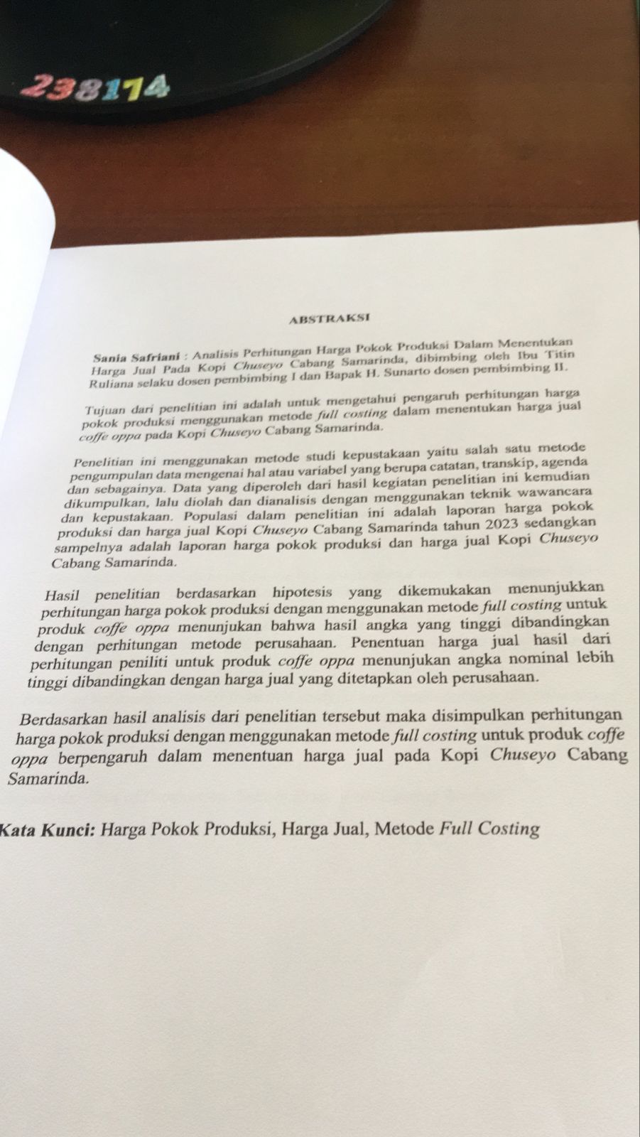 ANALISIS PERHITUNGAN HARGA POKOK PRODUKSI DALAM MENENTUKAN HARGA JUAL PADA KOPI CHUSEYO CABANG SAMARINDA