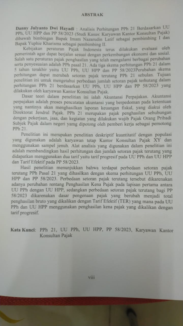 ANALISIS PERHITUNGAN PPh 21 BERDASARKAN UU PPh, UU HPP DAN PP 58/ 2023 (STUDI KASUS ; KARYAWAN KANTOR KONSULTAN PAJAK)