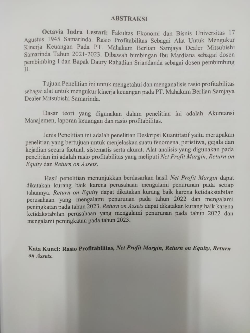 RASIO PROFITABILITAS SEBAGAI ALAT UNTUK MENGUKUR KINERJA KEUANGAN PADA PT. MAHAKAM BERLIAN SAMJAYA DEALER MITSUBISHI SAMARINDA TAHUN 2021 - 2023