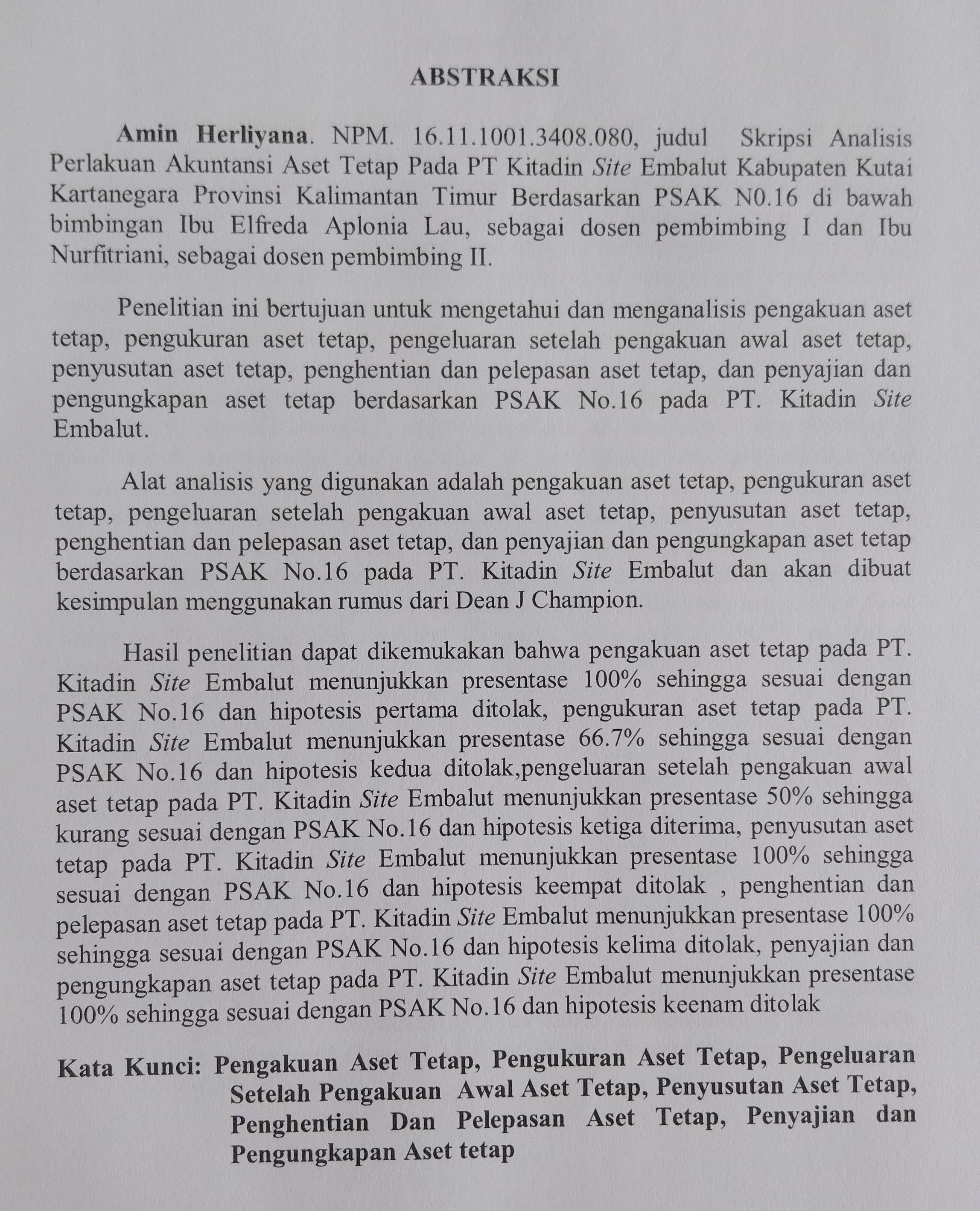 ANALISIS PERLAKUAN AKUNTANSI ASET TETAP PADA PT. KITADIN SITE EMBALUT KABUPATEN KUTAI KARTANEGARA PROVINSI KALIMANTAN TIMUR BERDASARKAN PSAK N0. 16