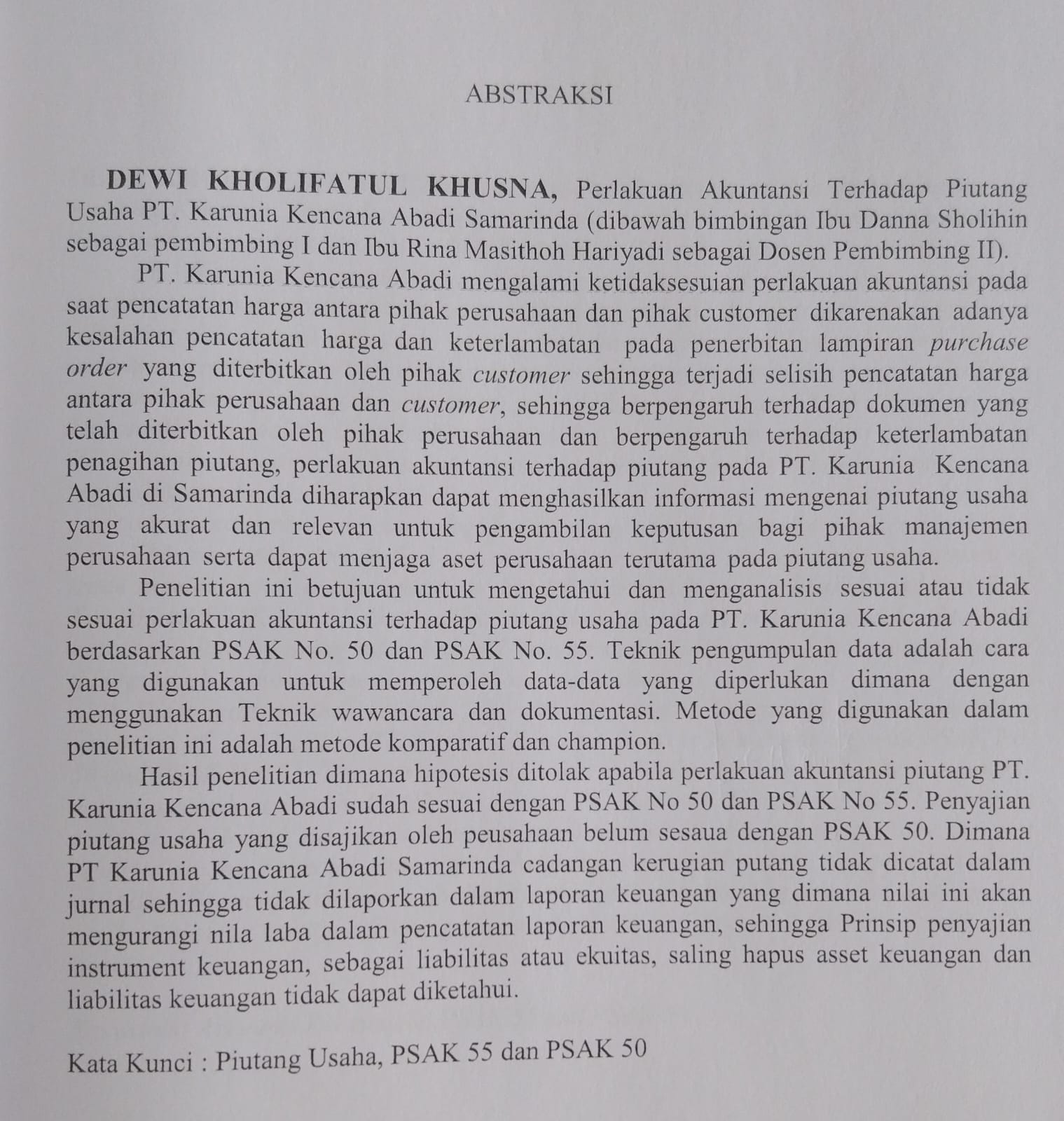 PERLAKUAN AKUNTANSI TERHADAP PIUTANG USAHA PT. KARUNIA KENCANA ABADI SAMARINDA