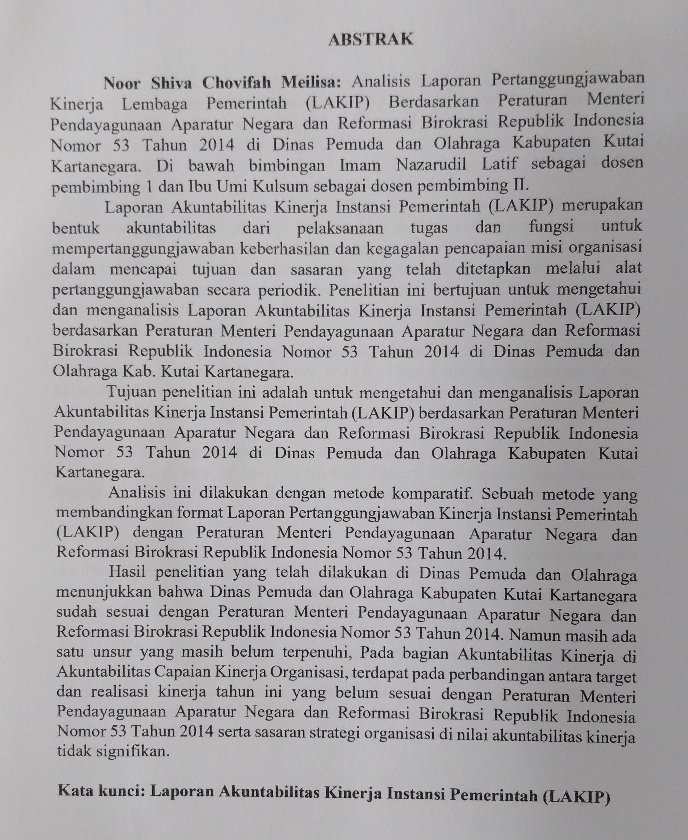 ANALISIS LAPORAN AKUNTABILITAS KINERJA INSTANSI PEMERINTAH (LAKIP) BERDASARKAN PERATURAN MENTERI PENDAYAGUNAAN APARATUR NEGARA DAN REFORMASI BIROKRASI REPUBLIK INDONESIA NOMOR 53 TAHUN 2014 PADA DINAS PEMUDA DAN OLAHRAGA KAB. KUTAI KARTANEGARA TAHUN 2022