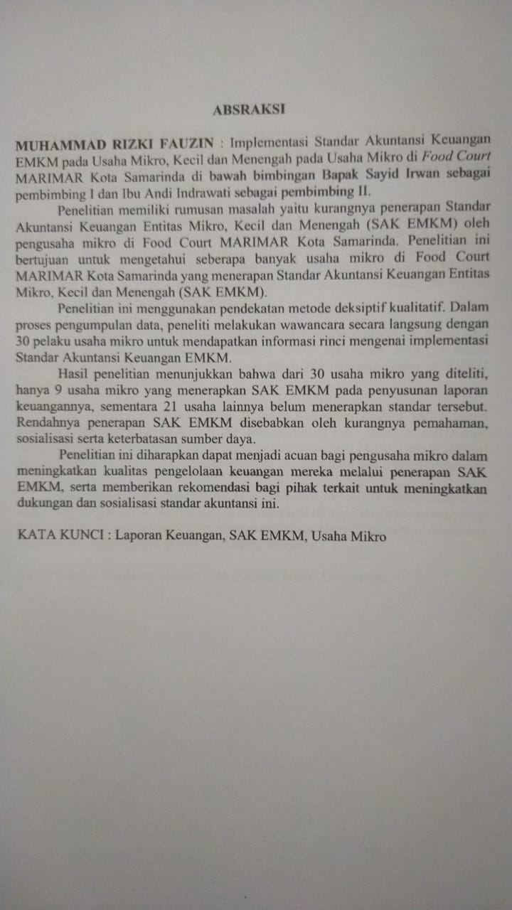 IMPLEMENTASI STANDAR AKUNTANSI KEUANGAN EMKM PADA USAHA MIKRO DI FOOD COURT MARIMAR KOTA SAMARINDA