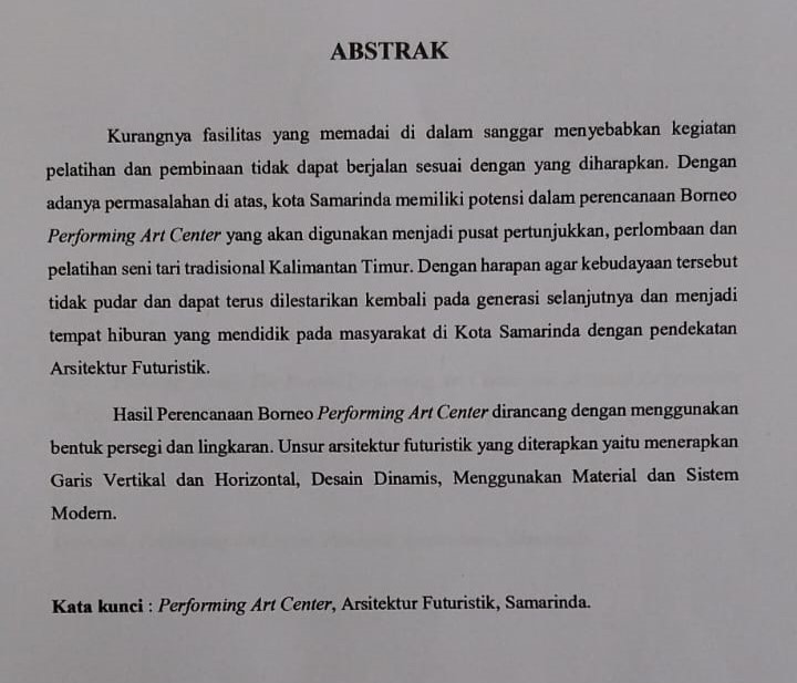 PERENCANAAN BORNEO PERFORMING ART CENTER DENGAN PENDEKATAN ARSITEKTUR FUTURISTIK DI KOTA SAMARINDA