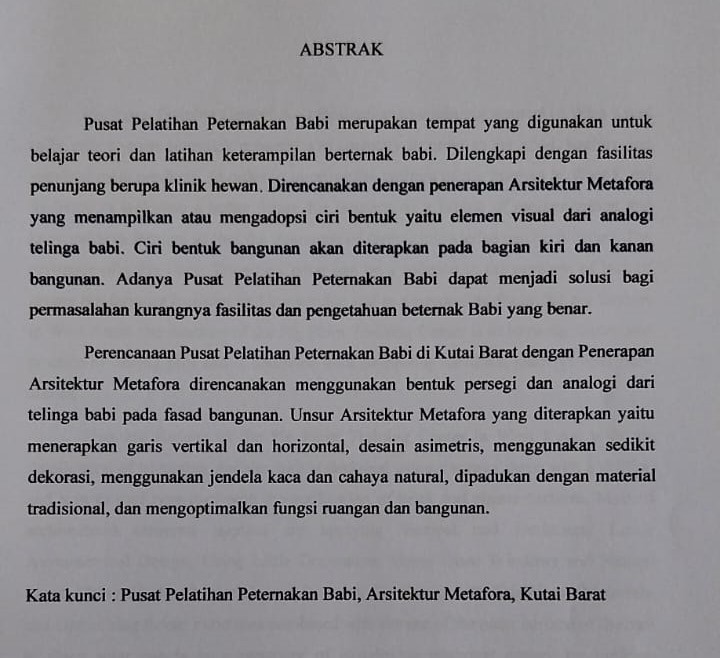 PERENCANAAN PUSAT PELATIHAN PETERNAKAN BABI DI KABUPATEN KUTAI BARAT DENGAN PENERAPAN KONSEP ARSITEKTUR METAFORA