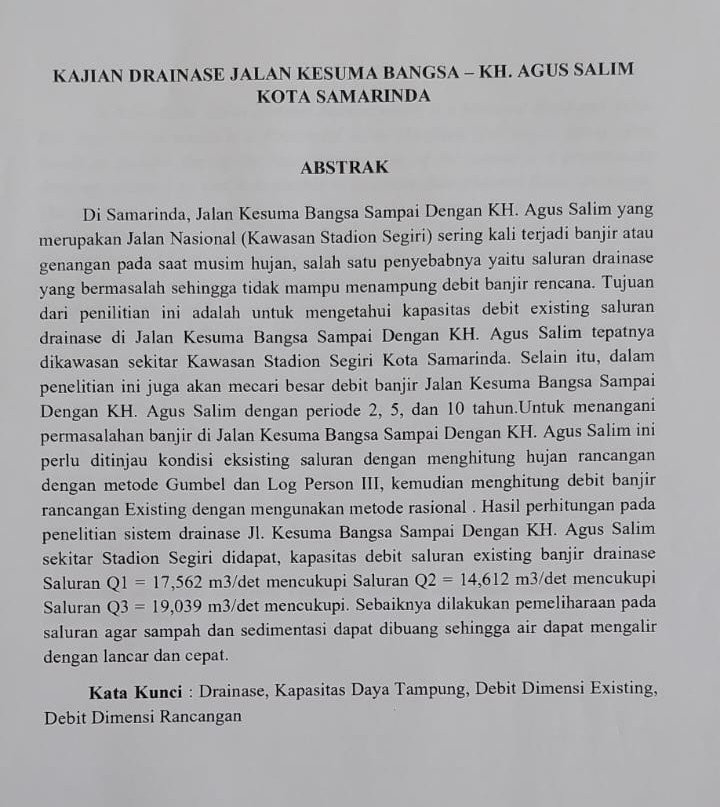 KAJIAN DRAINASE KESUMA BANGSA - KH. AGUS SALIM KOTA SAMARINDA