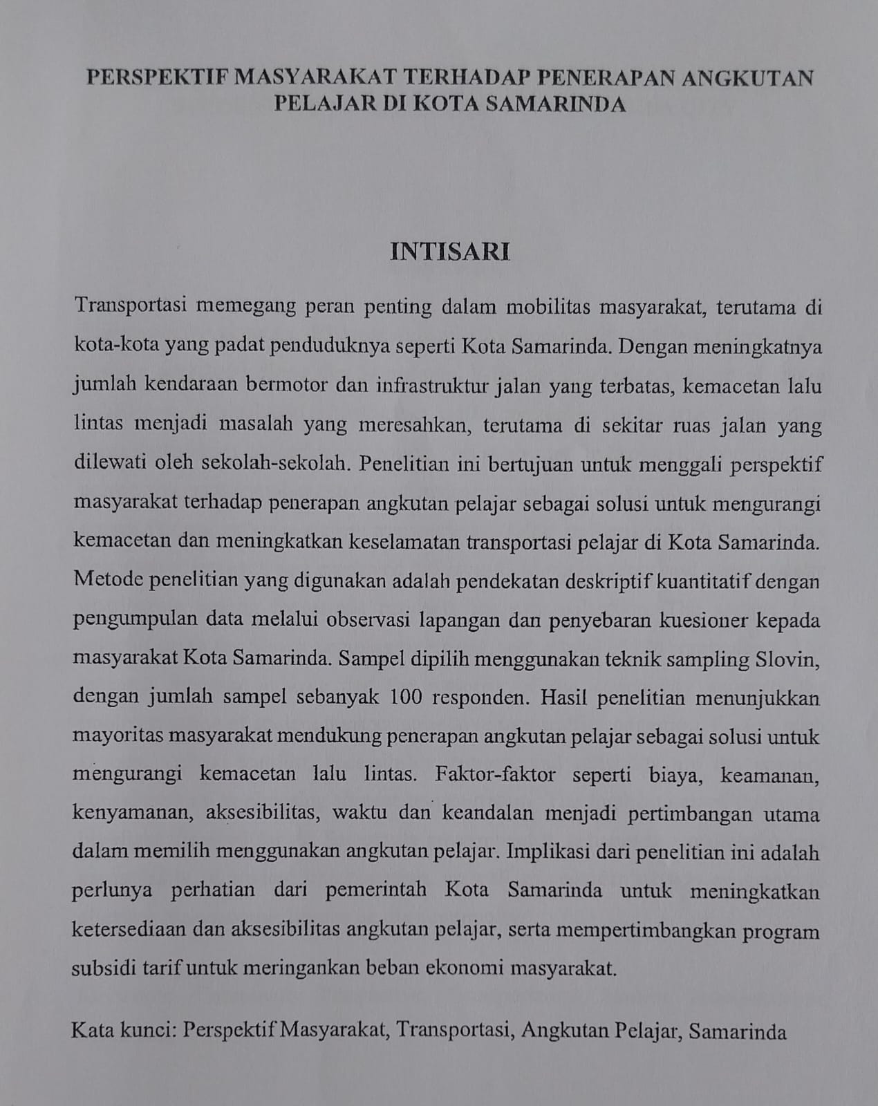 PERSPEKTIF MASYARAKAT TERHADAP PENERAPAN ANGKUTAN PELAJAR DI KOTA SAMARINDA