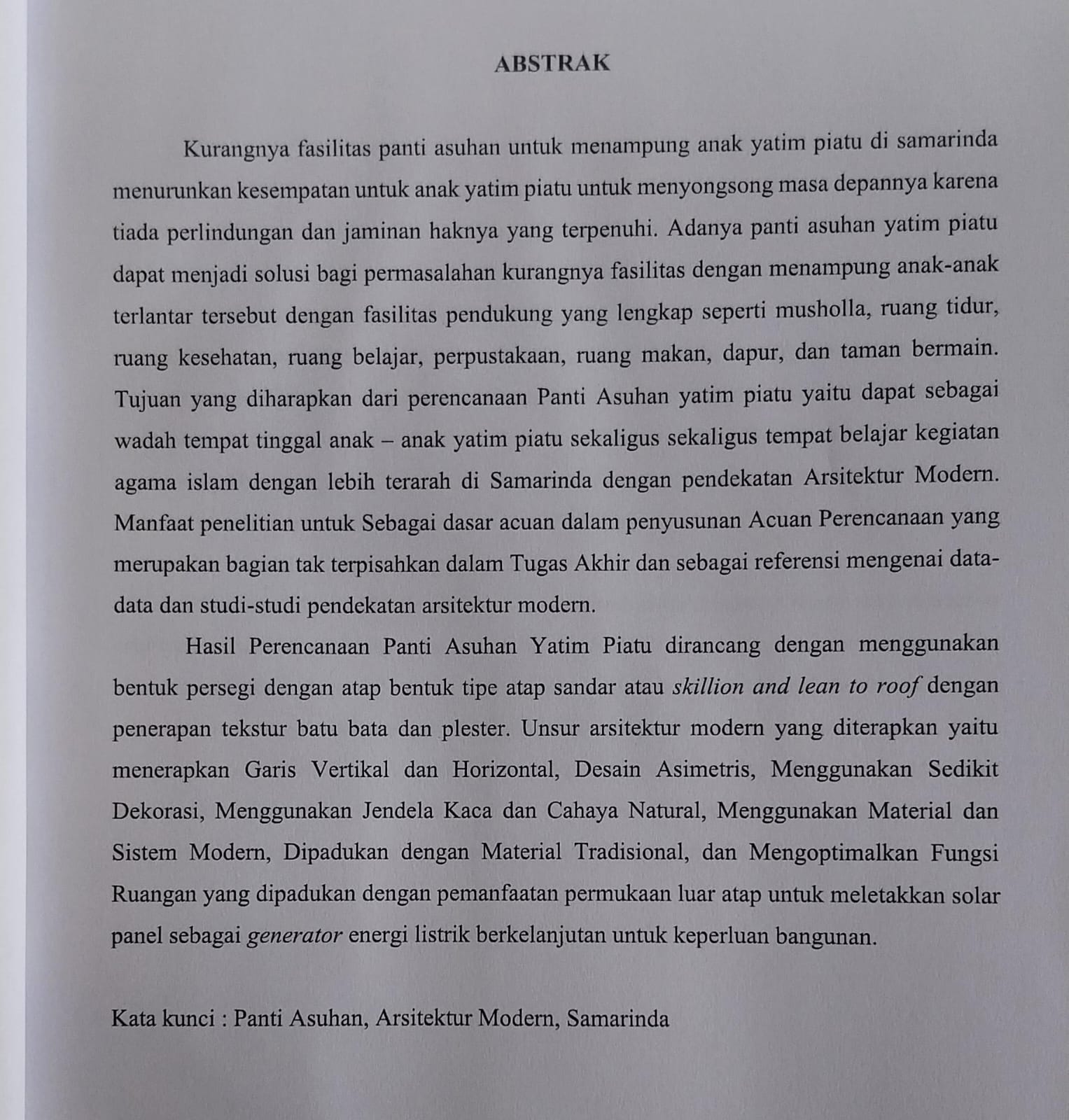 PERENCANAAN PANTI ASUHAN YATIM PIATU DI SAMARINDA DENGAN PENDEKATAN ARSITEKTUR MODERN