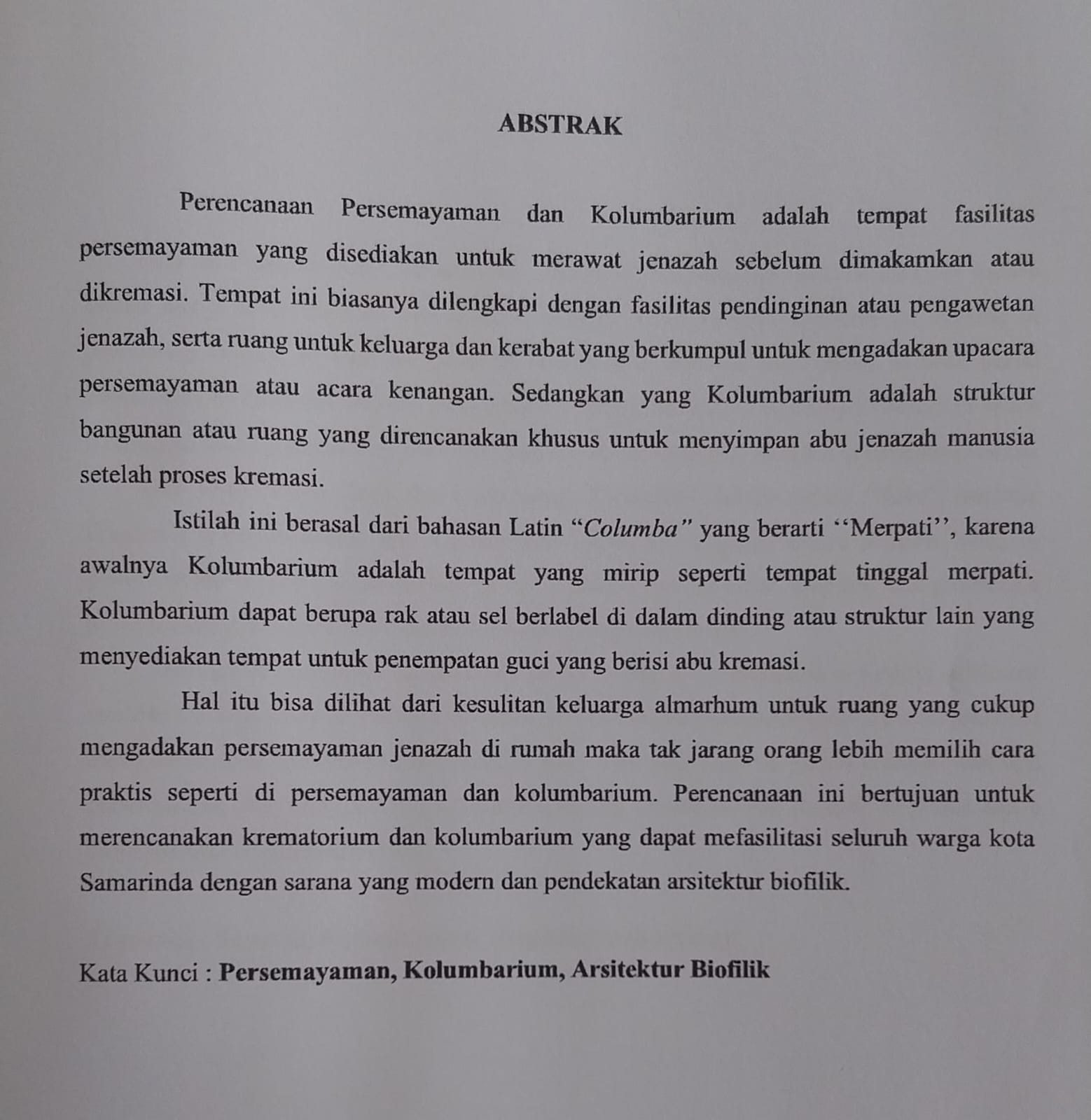 PERENCANAAN PERSEMAYAMAN DAN KOLUMBARIUM DI SAMARINDA DENGAN PENDEKATAN ARSITEKTUR BIOFILIK