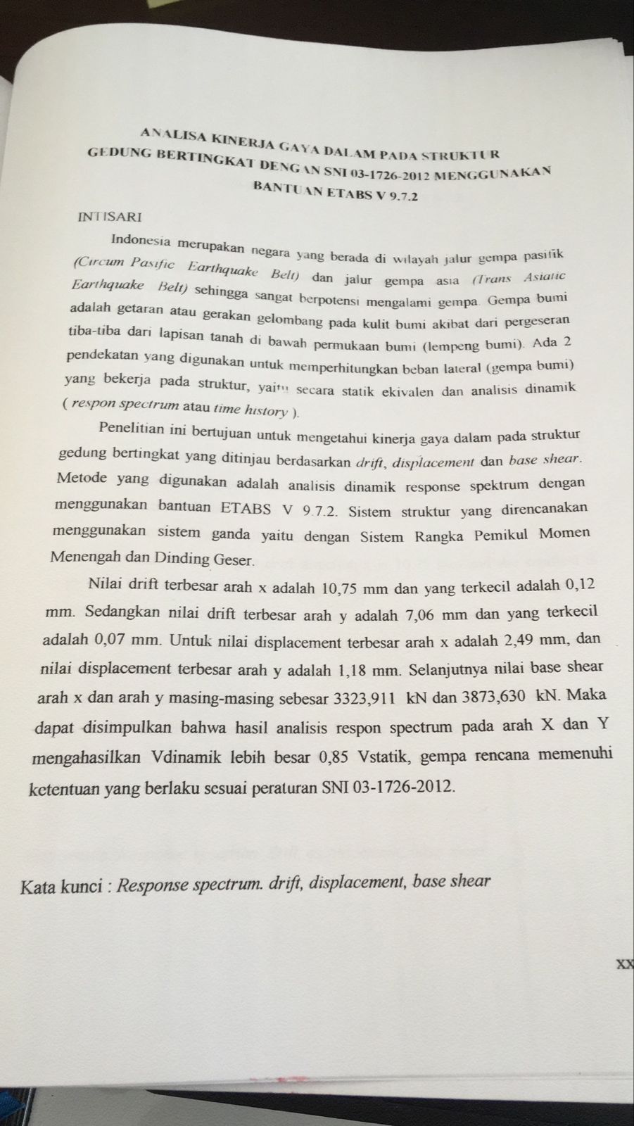 ANALISA KINERJA GAYA DALAM PADA STRUKTUR GEDUNG BERTINGKAT DENGAN SNI 1726-2012 MENGGUNAKAN BANTUAN ETABS V9.7.2