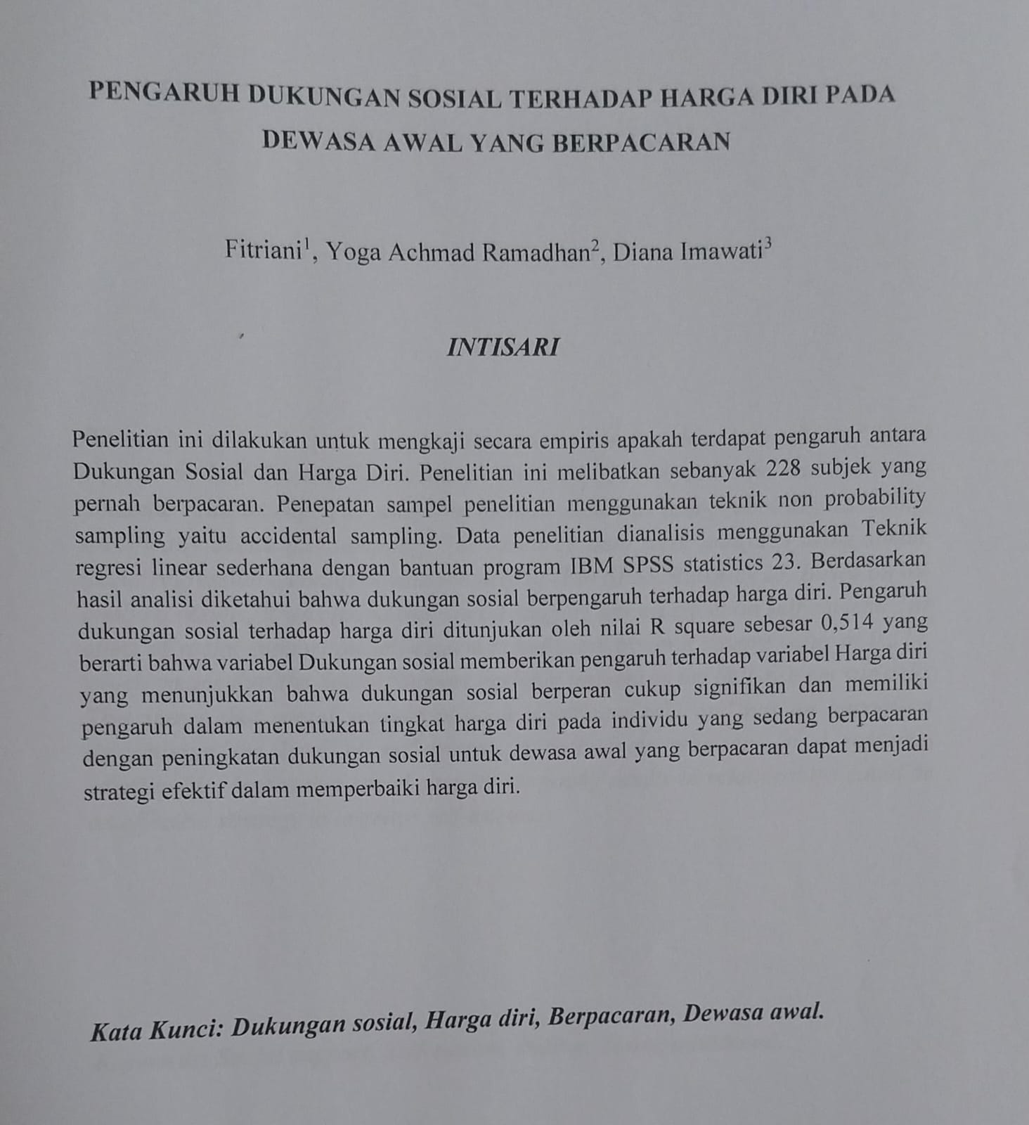 DUKUNGAN SOSIAL TERHADAP HARGA DIRI PADA DEWASA AWAL YANG BERPACARAN