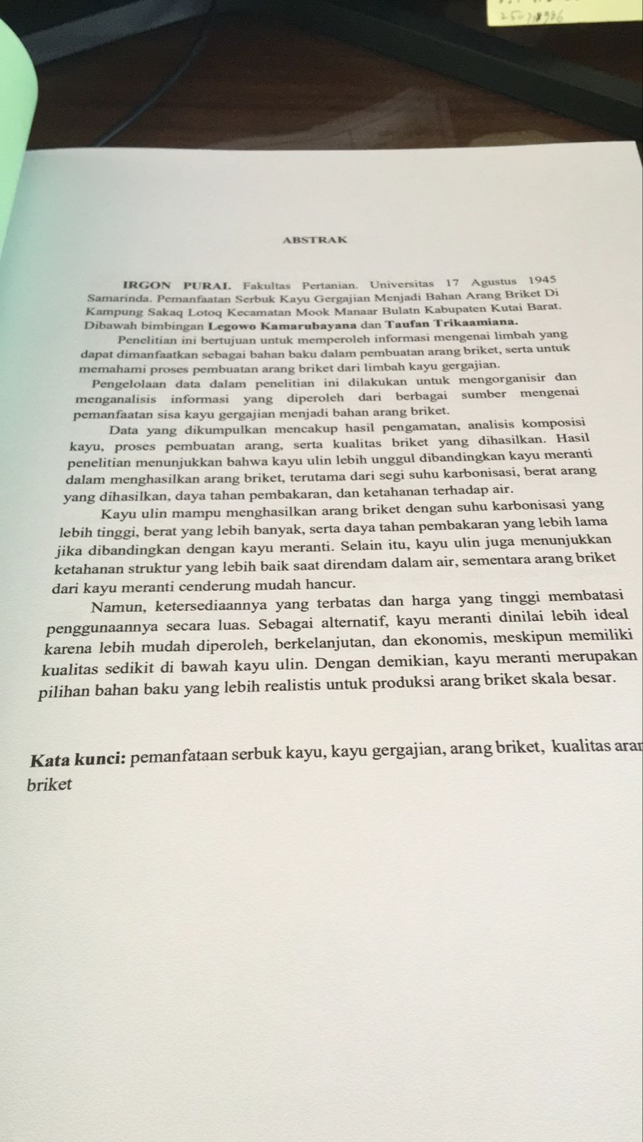 PEMANFAATAN SERBUK KAYU GERGAJIAN MENJADI BAHAN ARANG BRIKET DI KAMPUNG SAKAQ LOTOQ KECAMATAN MOOK MANAAR BULATN KABUPATEN KUTAI BARAT