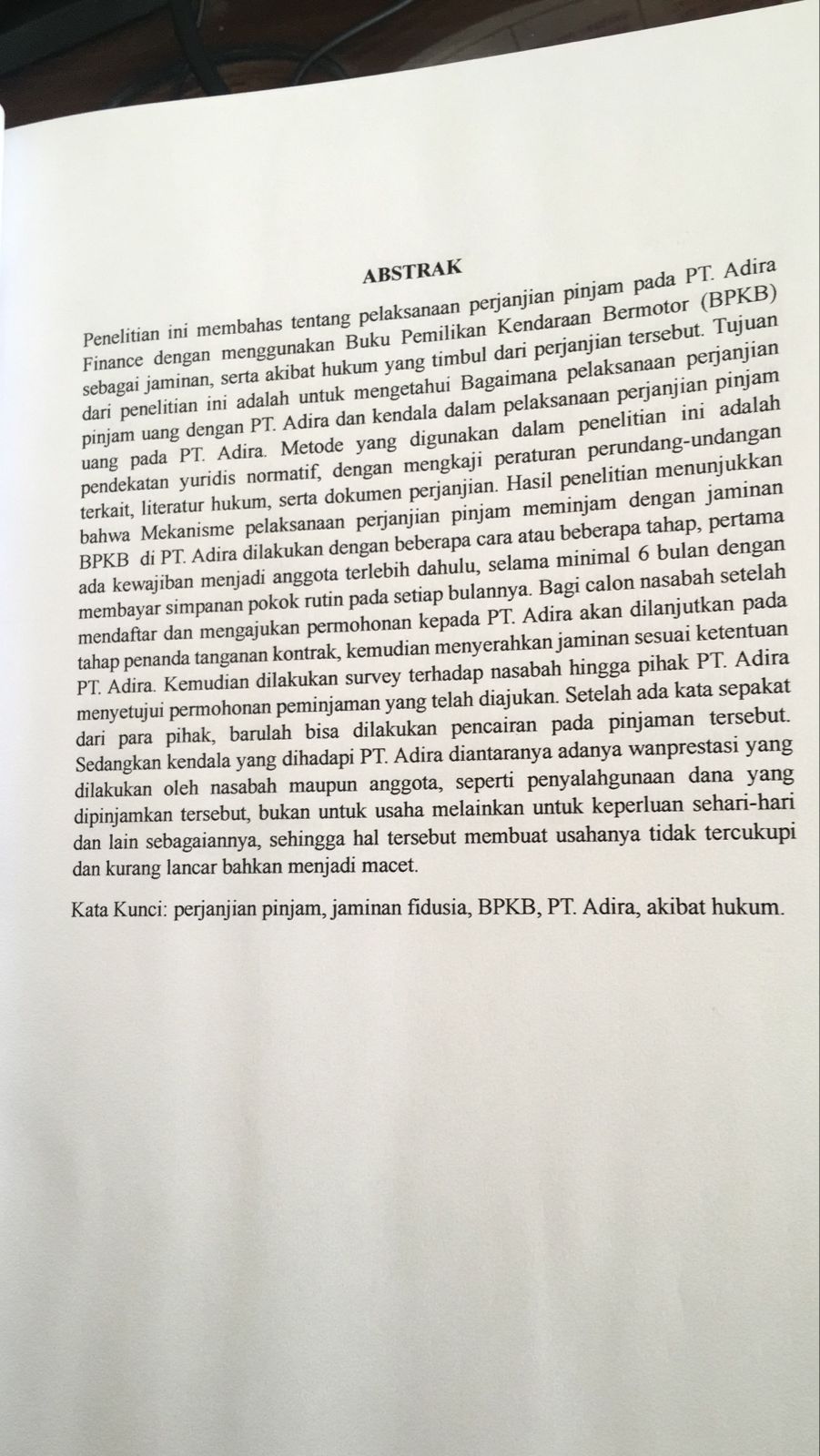PERJANJIAN PINJAM PADA PT. ADIRA DENGAN JAMINAN BUKU PEMILIKAN KENDARAAN BERMOTOR DAN AKIBAT HUKUMNYA