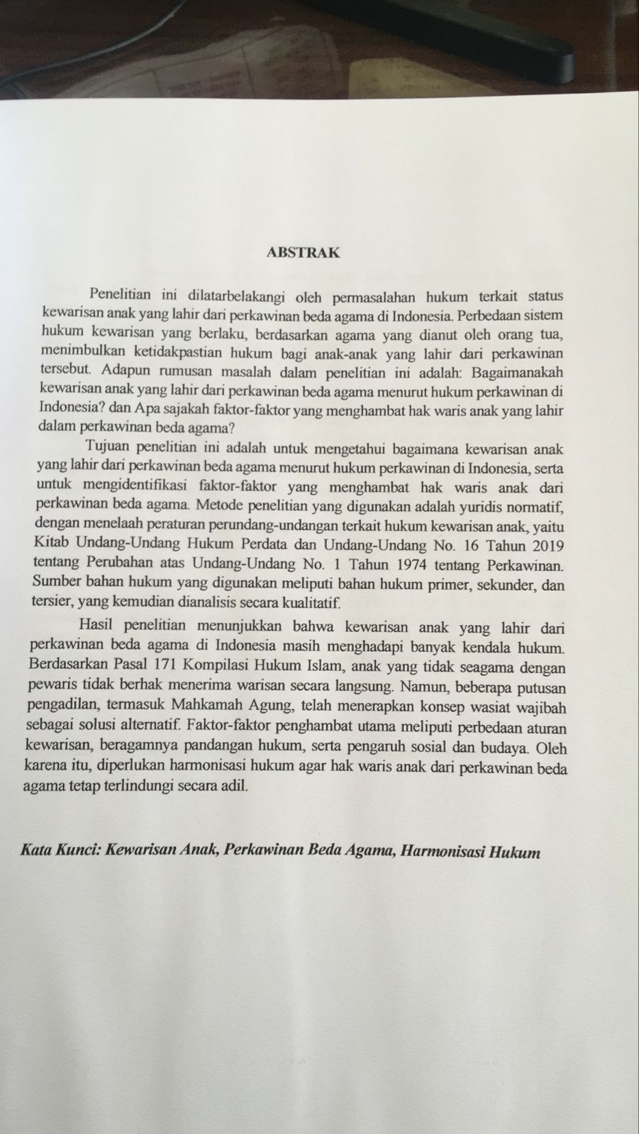 TINJAUAN YURIDIS TERHADAP KEWARISAN ANAK DARI PERKAWINAN BEDA AGAMA MENURUT HUKUM PERKAWINAN DI INDONESIA