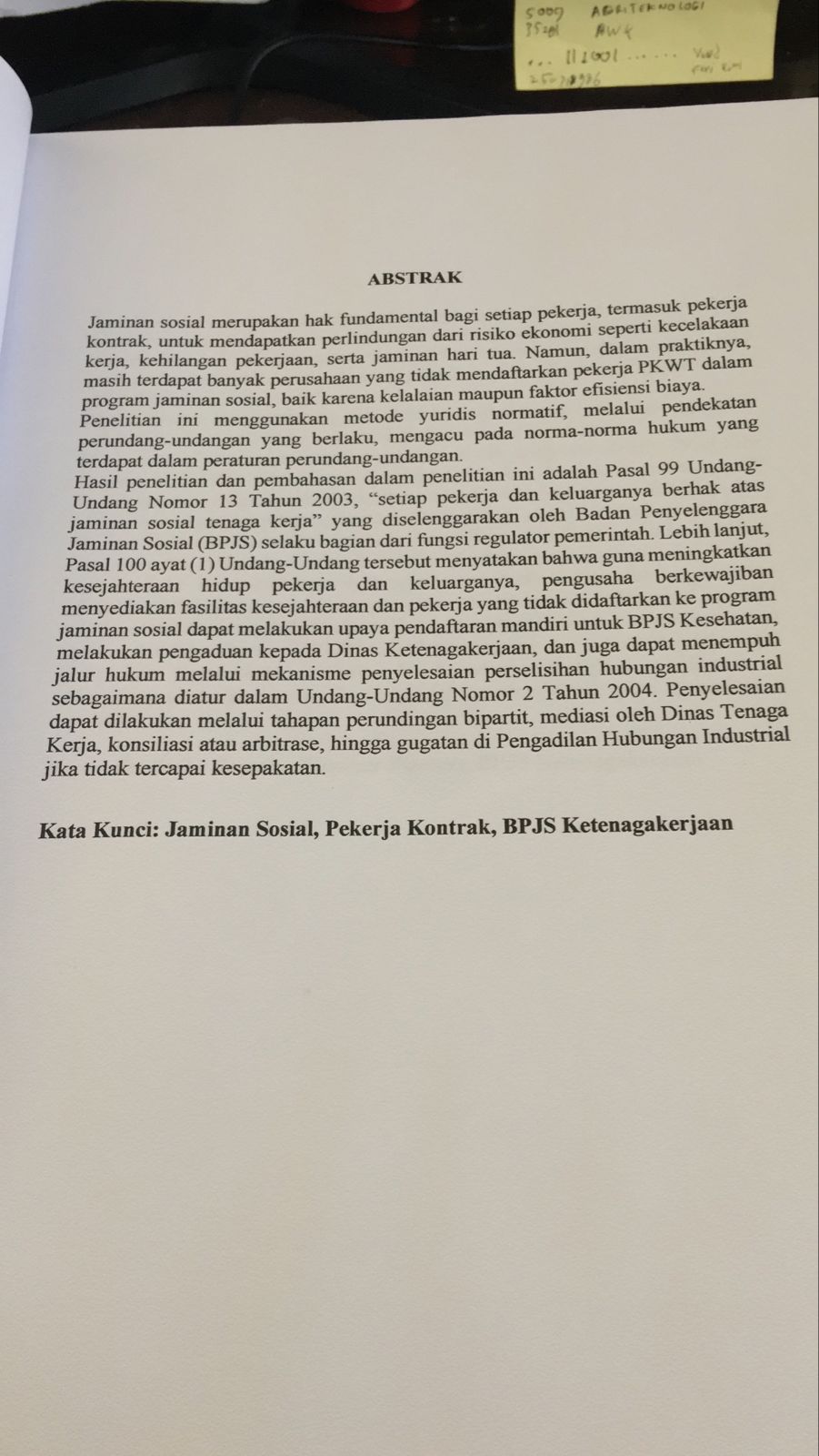 TINJAUAN YURIDIS TERHADAP HAK JAMINAN SOSIAL PEKERJA DALAM PERJANJIAN KERJA WAKTU TERTENTU DALAM PERSPEKTIF UNDANG-UNDANG KETENAGAKERJAAN