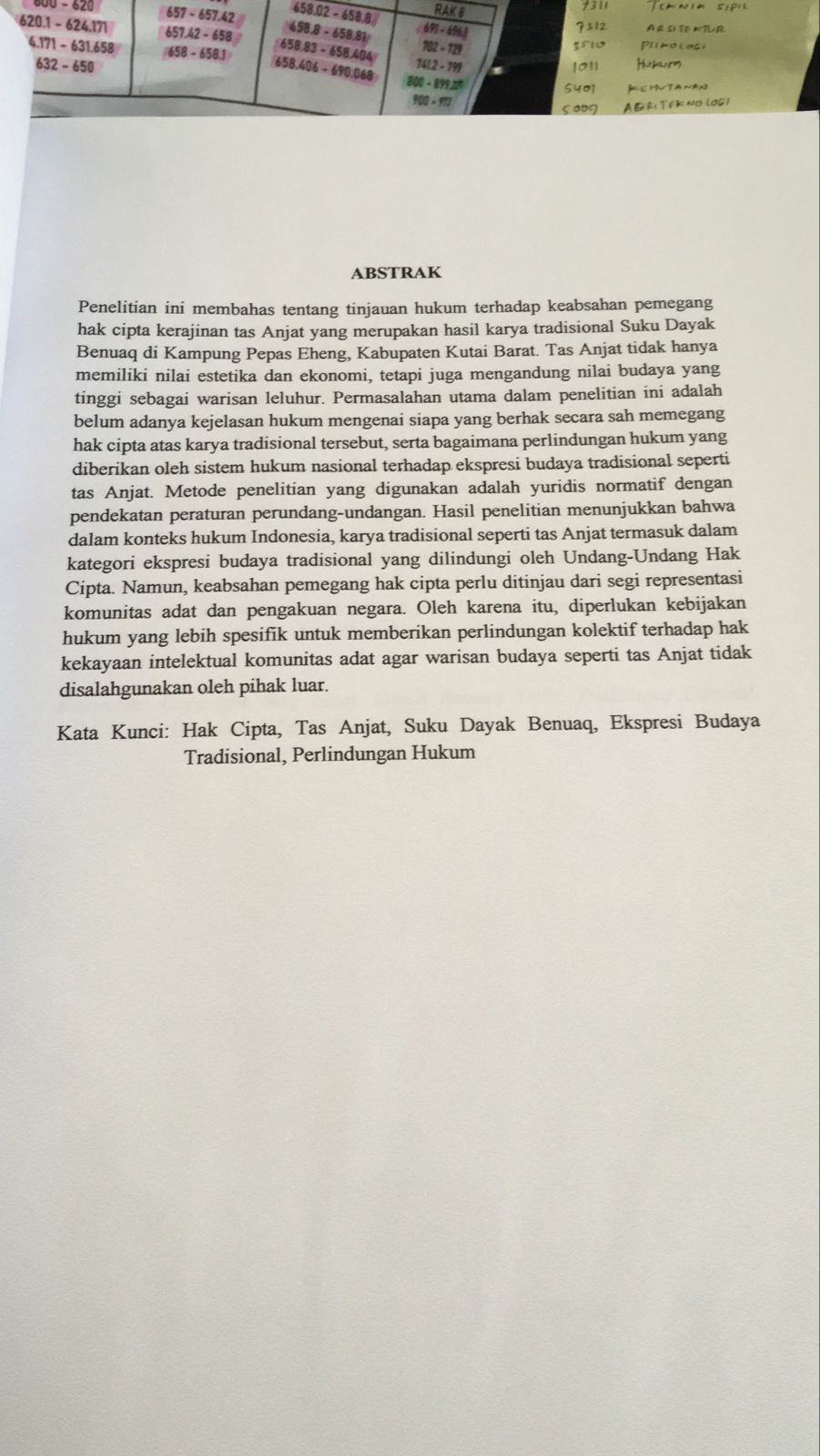 TINJAUAN HUKUM TERHADAP KEABSAHAN PEMEGANG HAK CIPTA KERAJINAN TAS ANJAT SUKU DAYAK BENUAQ DIKAMPUNG PEPAS EHENG KABUPATEN KUTAI BARAT