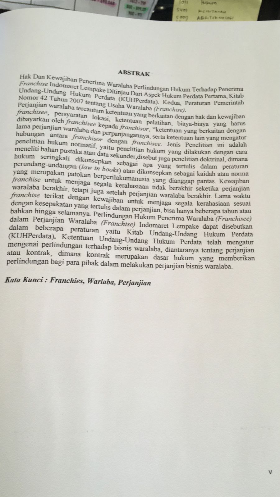TINJAUAN YURIDIS PERLINDUNGAN HUKUM TERHADAP PENERIMA FRANCHIES INDOMARET LEMPAKE DI TINJAU DARI ASPEK HUKUM PERDATA
