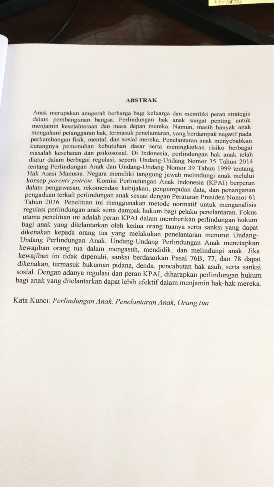 PERAN KOMISISI PERLINDUNGAN ANAK IN DONESIA TERHADAP PENELANTARAN ANAK OLEH KEDUA ORANG TUANYA