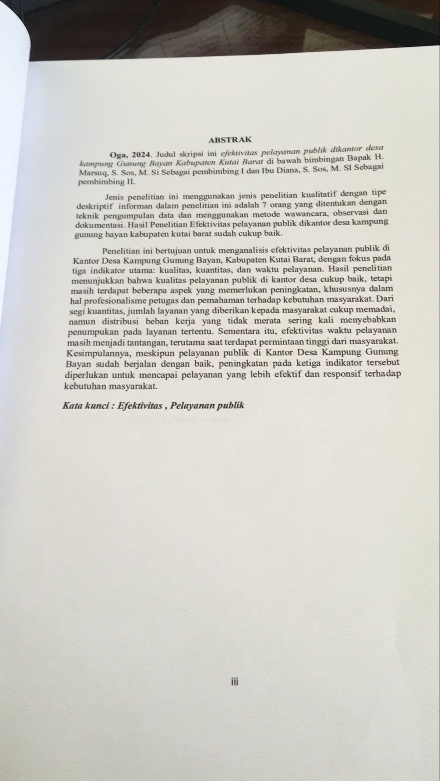 EFEKTIVITAS PELAYANAN PUBLIK DI KANTOR DESA KAMPUNG GUNUNG BAYAN KABUPATEN KUTAI BARAT