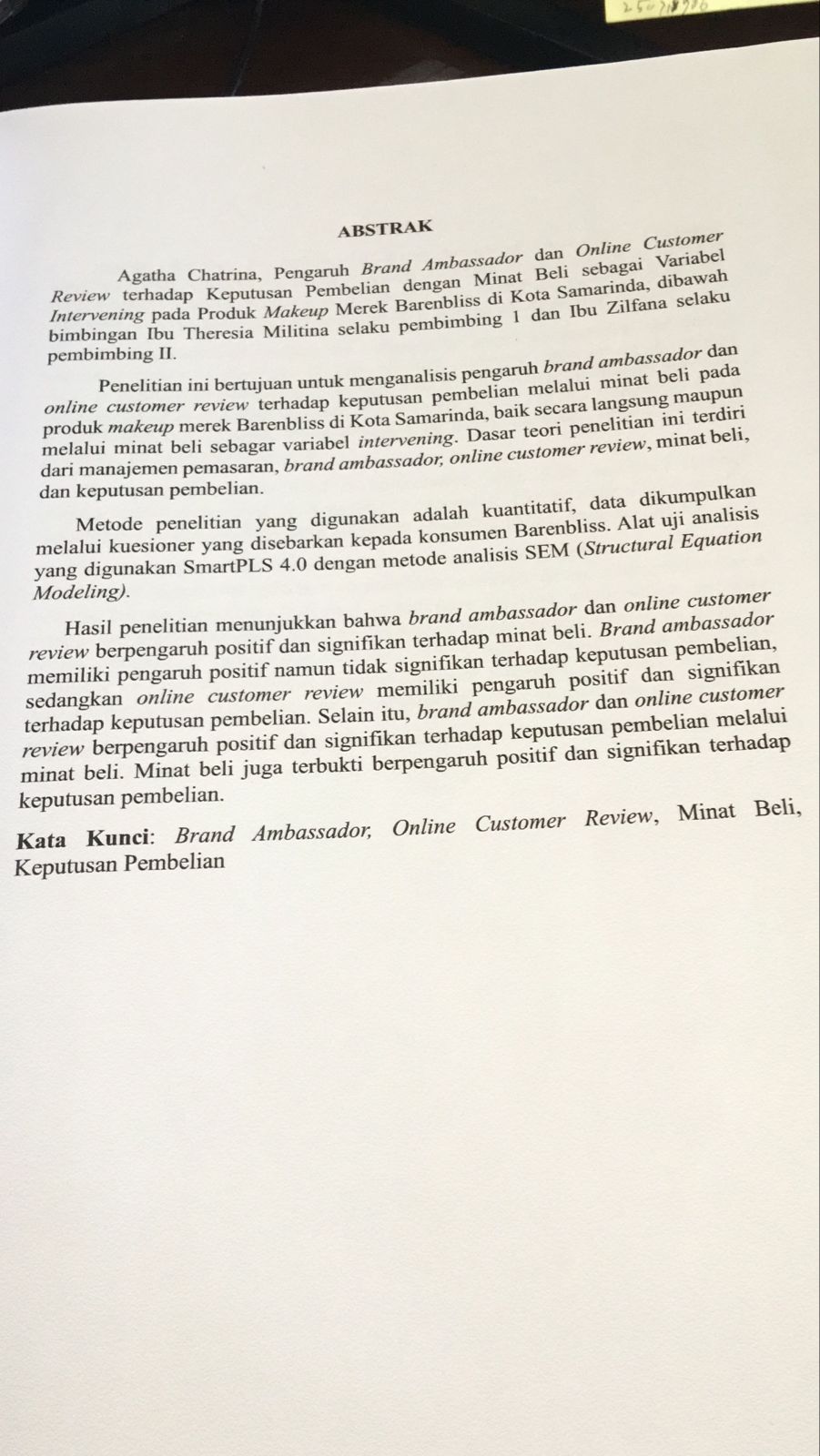 PENGARUH BRAND AMBASSADOR DAN ONLINE CUSTOMER REVIEW TERHADAP KEPUTUSAN PEMBELIAN DENGAN MINAT BELI SEBAGAI VARIABEL INTERVENING PADA PRODUK MAKEUP MEREK BARENBLISS DI KOTA SAMARINDA