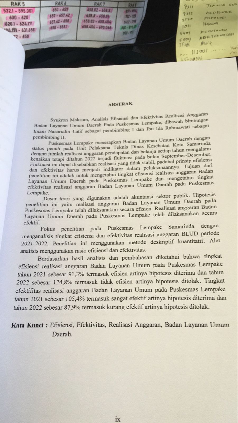 ANALISIS EFISIENSI DAN EFEKTIVITAS REALISASI ANGGARAN BADAN LAYANAN UMUM DAERAH PADA PUSKESMAS LEMPAKE SAMARINDA