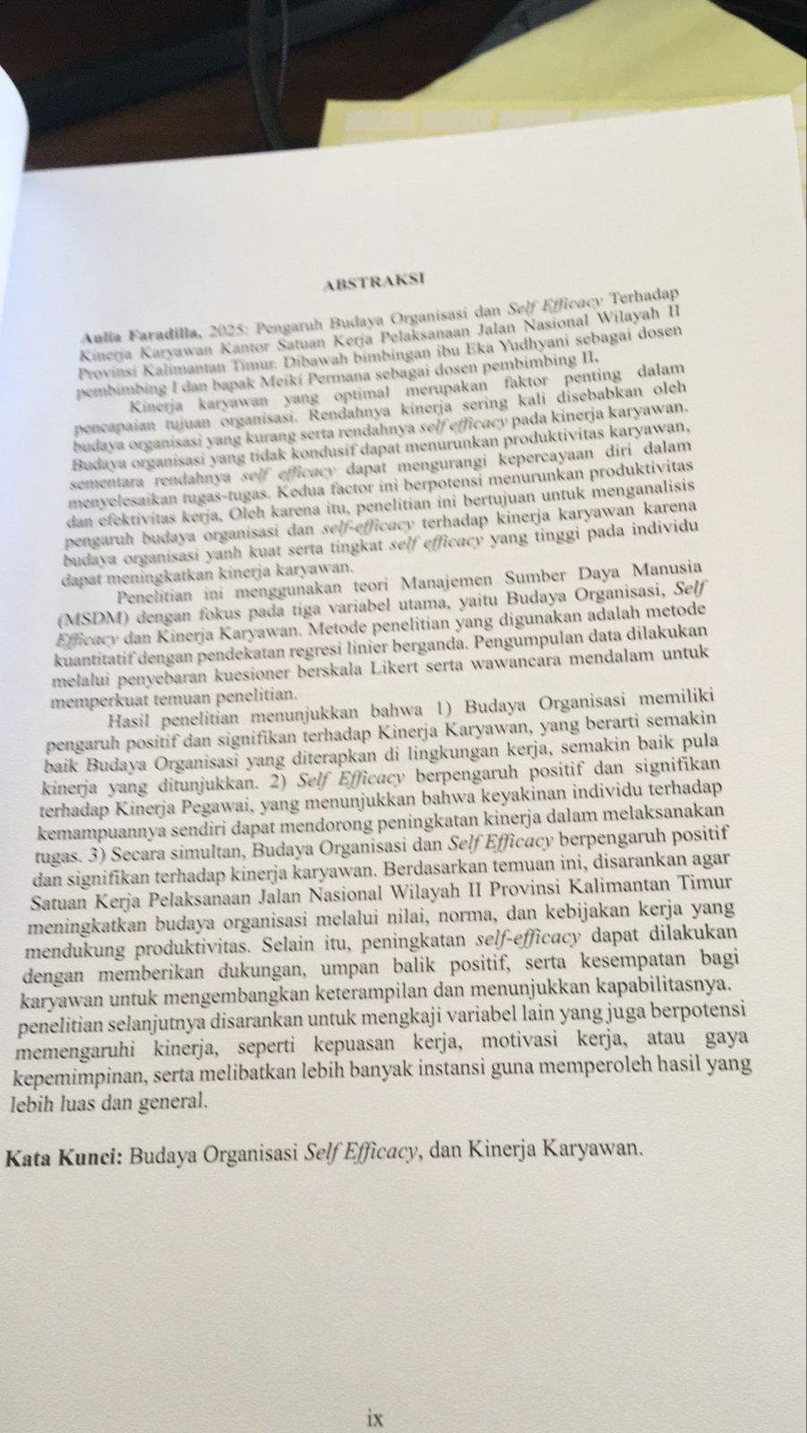 PENGARUH BUDAYA ORGANISASI DAN SELF EFFICACY TERHADAP KINERJA KARYAWAN SATUAN KERJA PELAKSANAAN JALAN NASIONAL WILAYAH II PROVINSI KALIMANTAN TIMUR