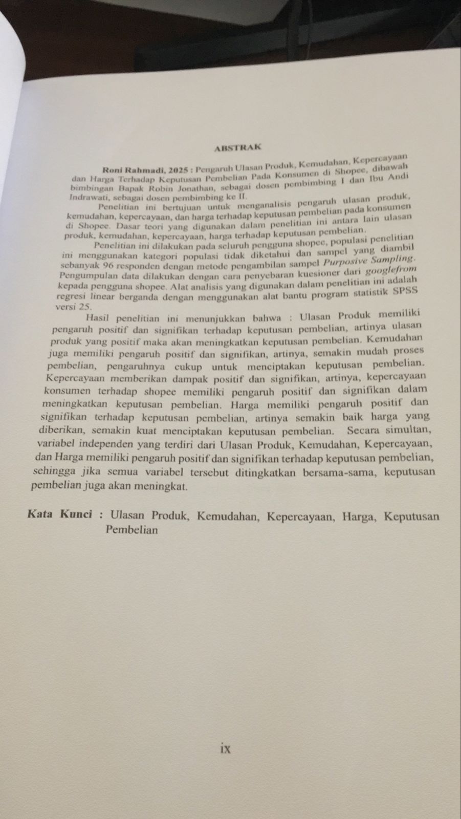 PENGARUHULASAN PRODUK, KEMUDAHAN, KEPERCAYAAN DAN HARGA TERHADAP KEPUTUSAN PEMBELIAN PADA KONSUMEN DI SHOPEE