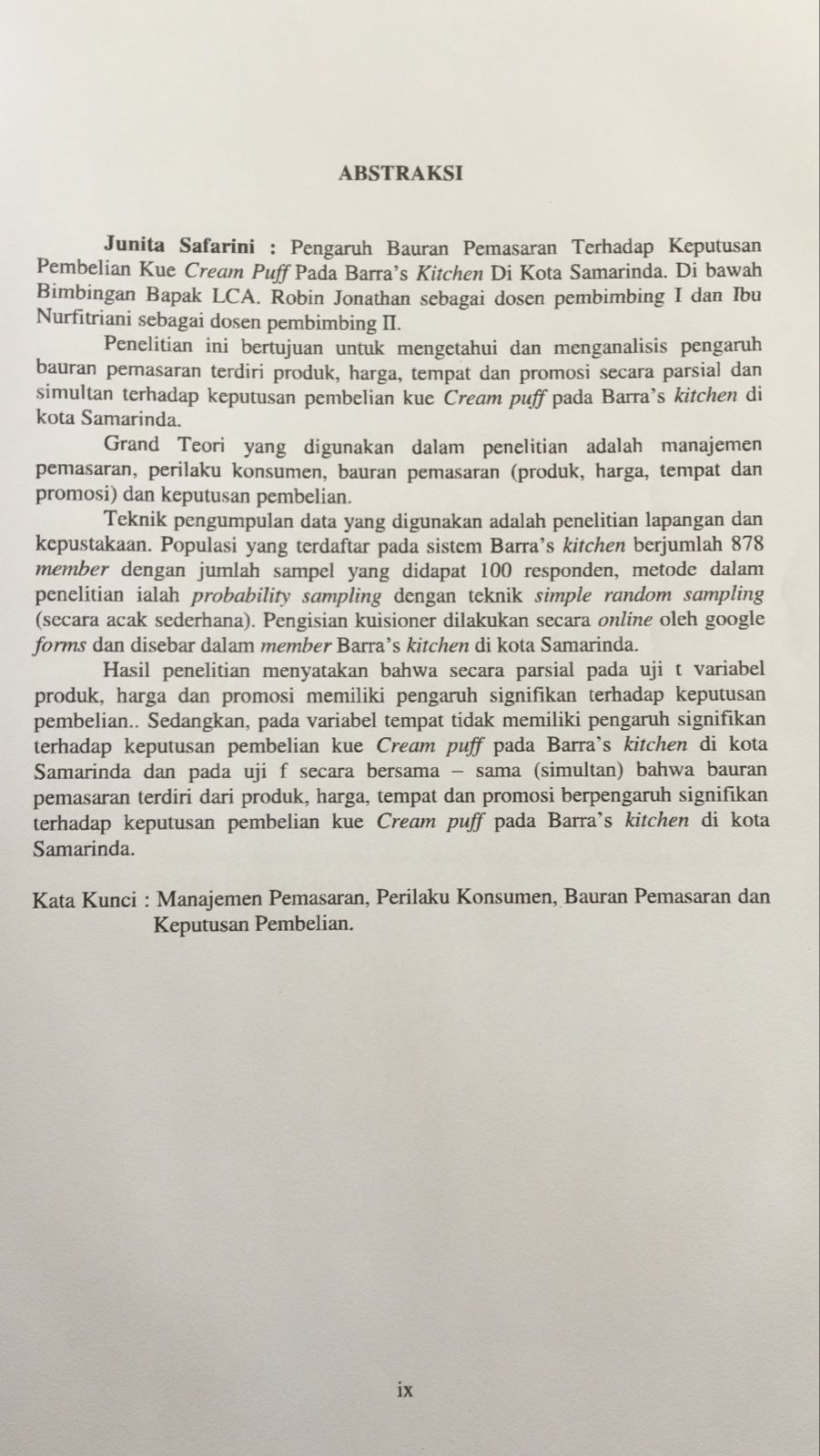 PENGARUH BAURAN PEMASARAN TERHADAP KEPUTUSAN PEMBELIAN KUE CREAM PUFF PADA BARRA`S KITCHEN DI KOTA SAMARINDA