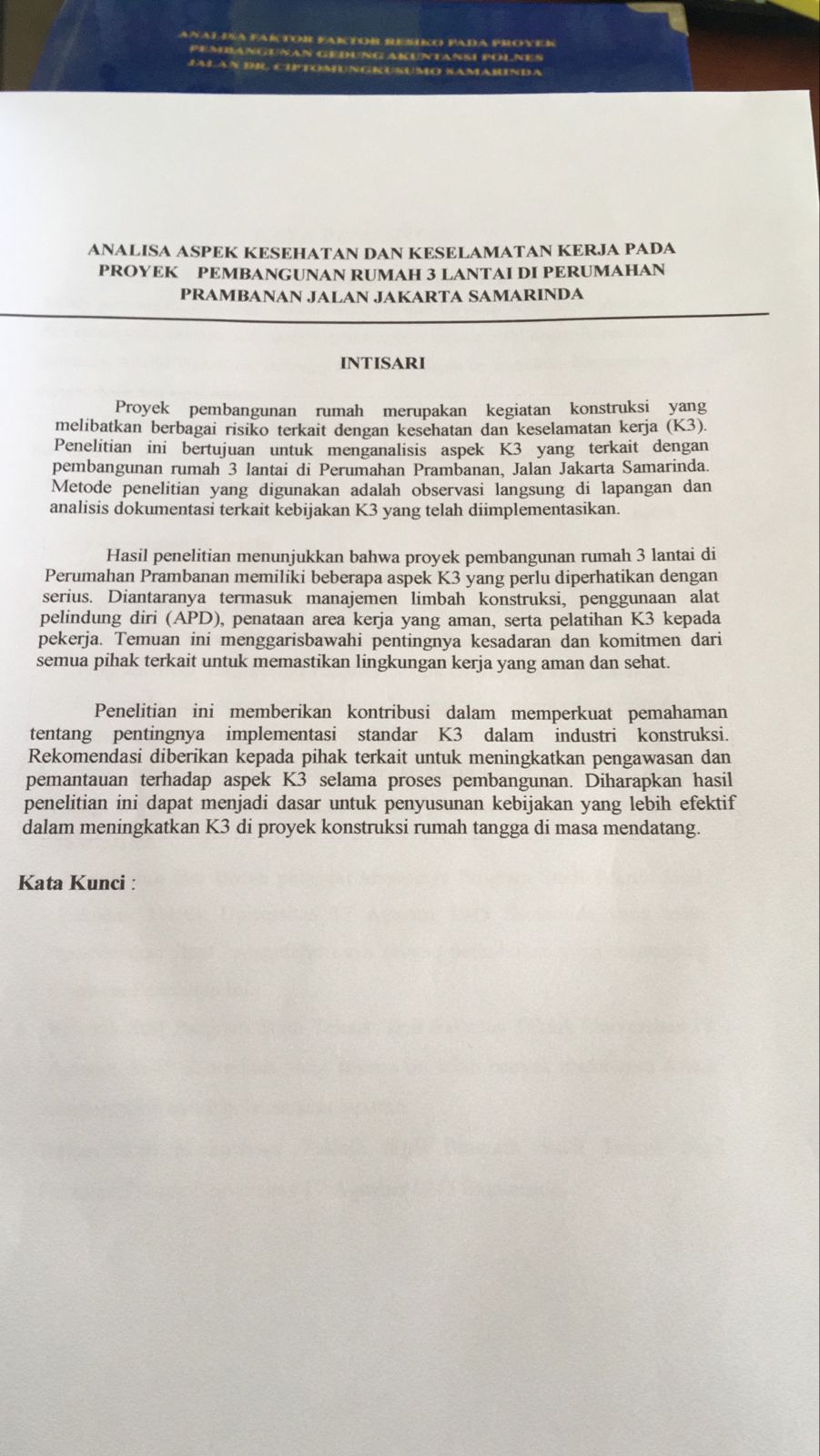 ANALISIS ASPEK KESEHATAN DAN KESELAMATAN KERJA PADA PROYEK PEMBANGUNAN RUMAH 3 LANTAI DI PERUMAHAN PRAMBANAN JALAN JAKARTA SAMARINDA