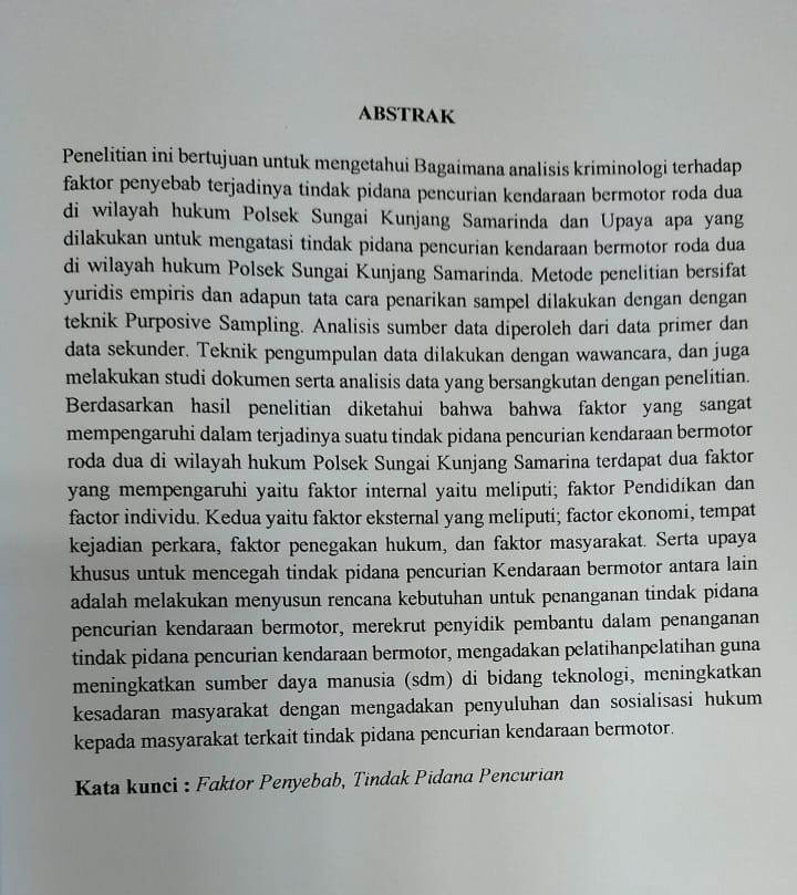 TINJAUAN KRIMINOLOGIS TERHADAP TINDAK PIDANA PENCURIAN KENDARAAN RODA DUA DI WILAYAH HUKUM POLSEK SUNGAI KUNJANG SAMARINDA