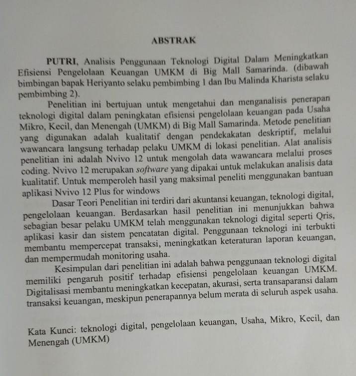 ANALISIS PENGGUNAAN TEKNOLOGI DIGITAL DALAM MENINGKATKAN EFISIENSI PENGELOLAAN KEUANGAN UMKM DI BIG MALL SAMARINDA
